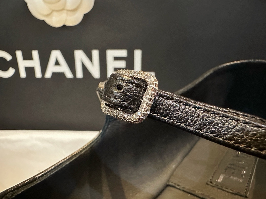 샤넬 듀얼밴드 큐빅 매리제인 블랙 송화 양가죽 패치워크 양가죽 단독 오픈 스와로브스키 스톤으로 포인트 투밴드 디자인으로 편안함을 자유롭게 조절가능 이태리 가죽 통굽
