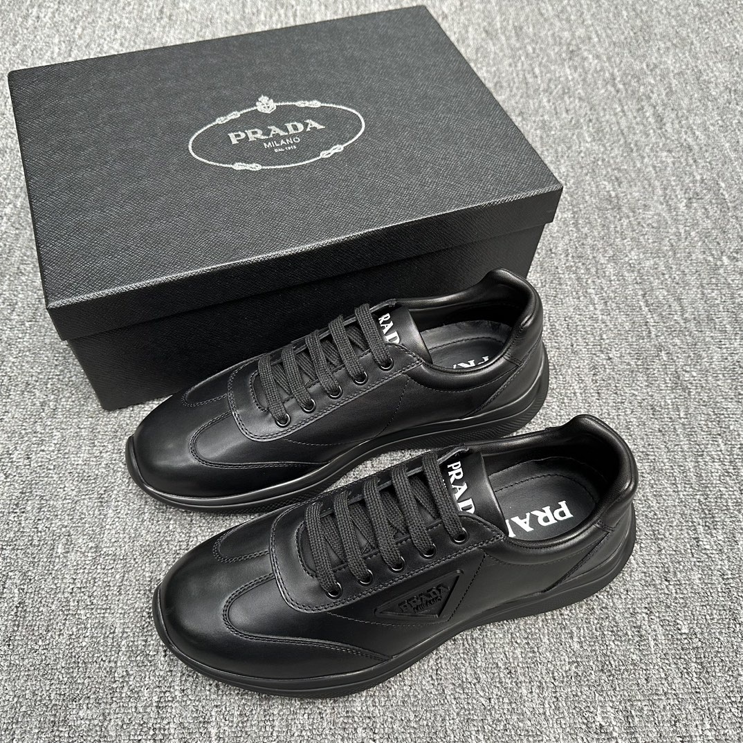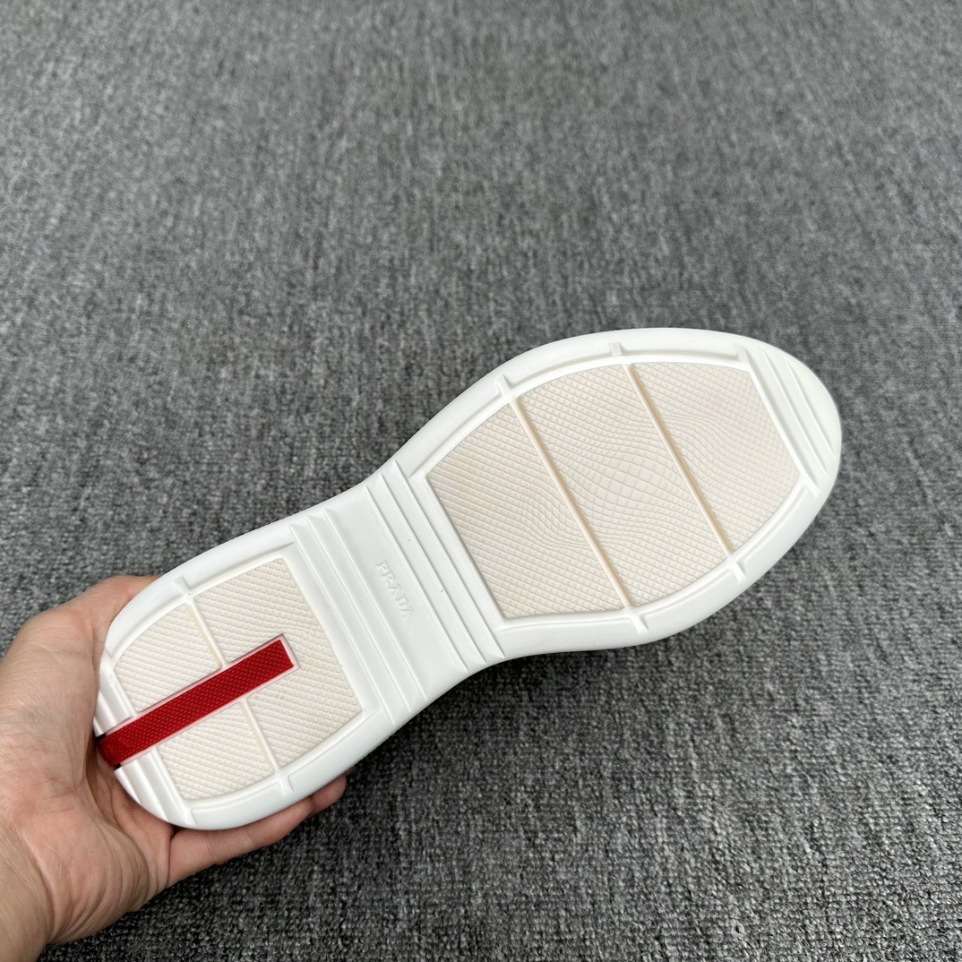 프라다 신상 남성화 캐쥬얼 로우 스니커즈 Tpu 경량 송아지 가죽 스트랩 장식 유니크하고 스포티한 느낌의 리얼 가죽 P 이니셜 배지로 브랜드 아이덴티티를 살린 캐주얼 스포츠 투웨이 펀칭 통가죽