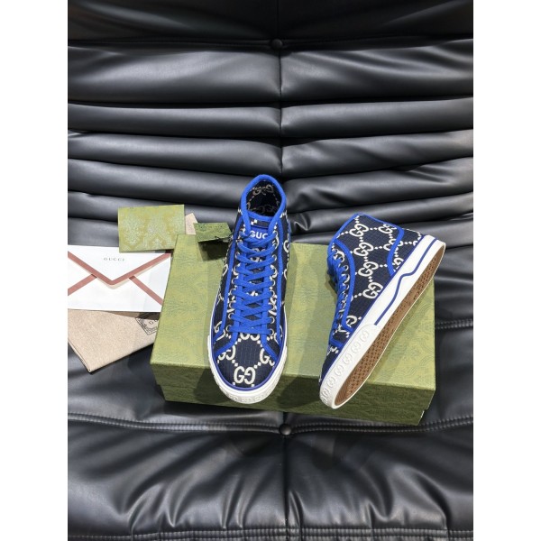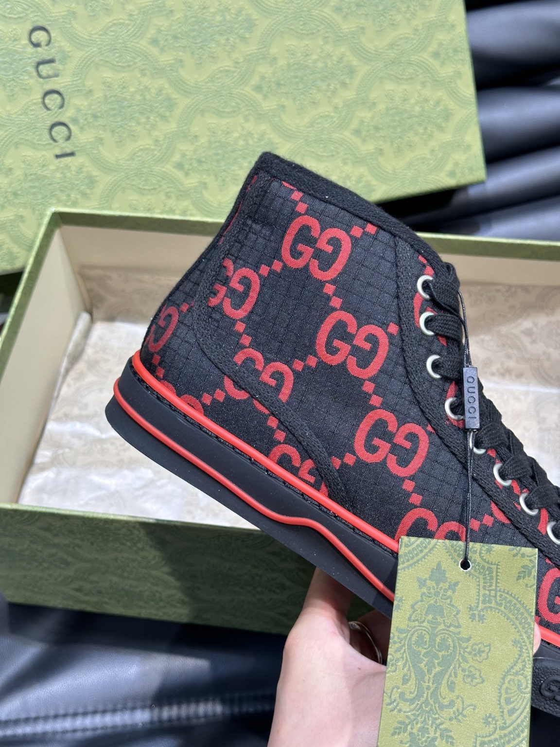 구찌 Tennis 1977 시리즈 GG 하이탑 스니커즈 원판 1:1 복각, TPU 원판 밑창 순수 수작업으로 포장 공법을 당기고, 디테일이 정교하고 흠잡을 데가 없으며, 납작한 앞코가 빈티지한 맛이 남 맞춤 캔버스라 무늬까지 똑같아요 클래식한 더블 G로고 봄여름 컬러매치가 너무 재미있어요