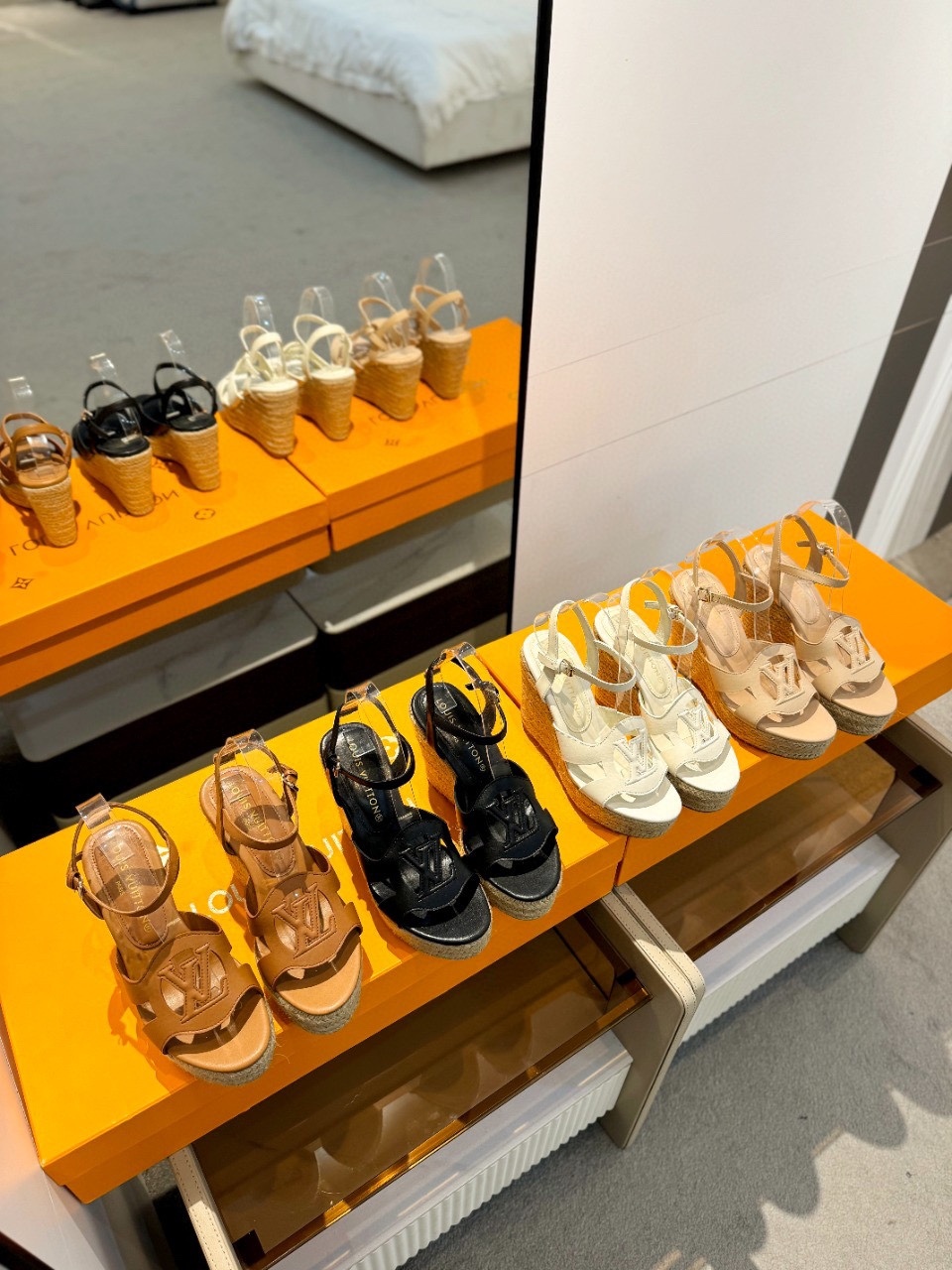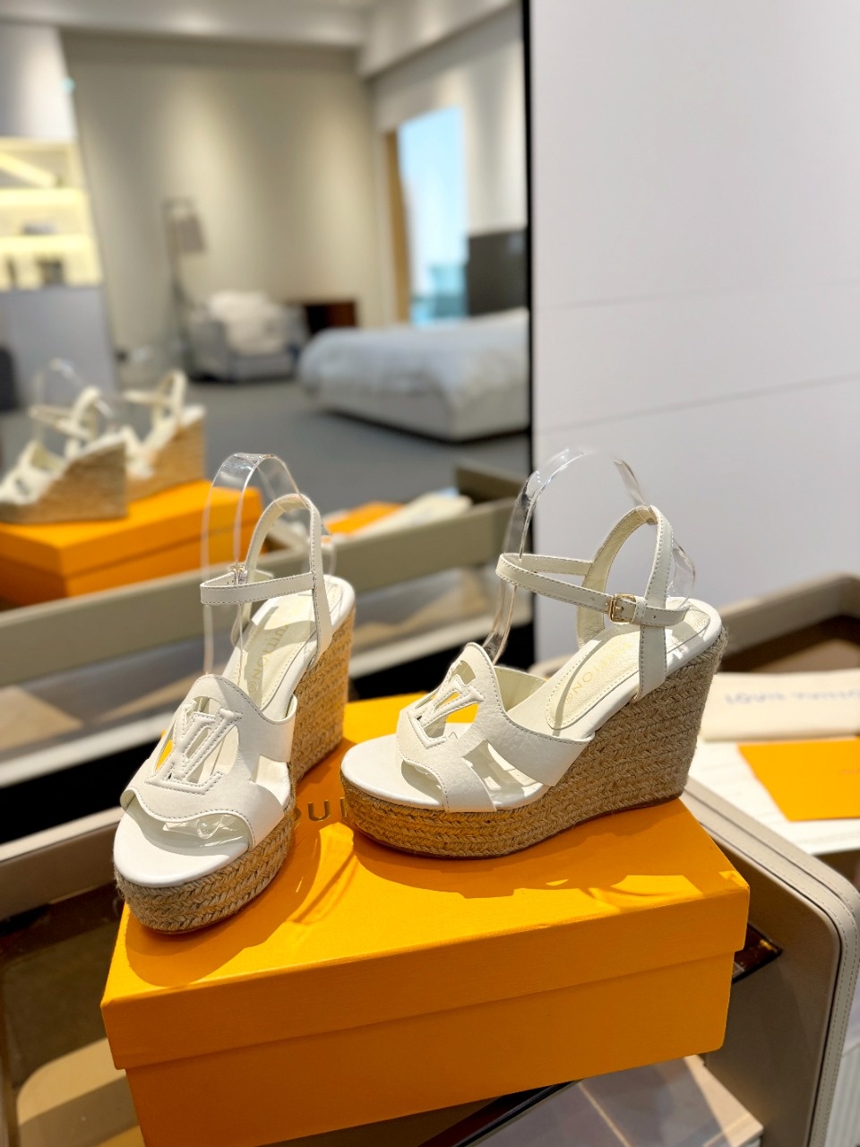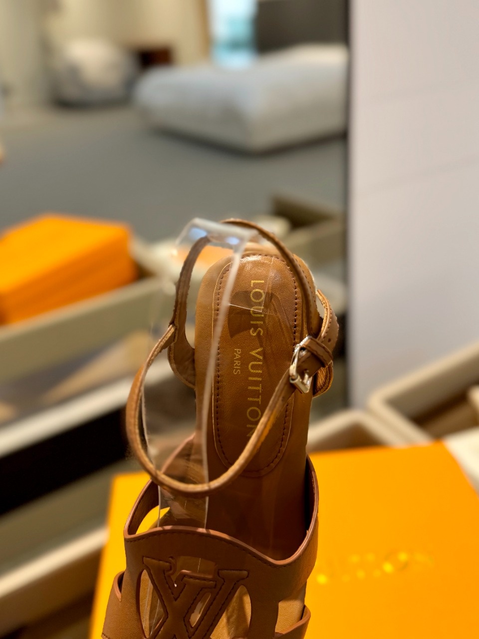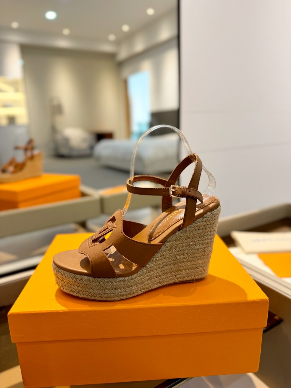 LV 타닌 시리즈 최신 워킹화 통굽 마끈샌들 홍콩 오리지널 구매 1대1 몰드 가죽은 오리지널 데님에 구제 왁싱 소가죽 안감 쿠션 통무스탕 워터프루프 기술 신발의 표면은 주문 제작으로 작업 시간이 많이 소요됨 굽: 뒤11cm 앞6cm