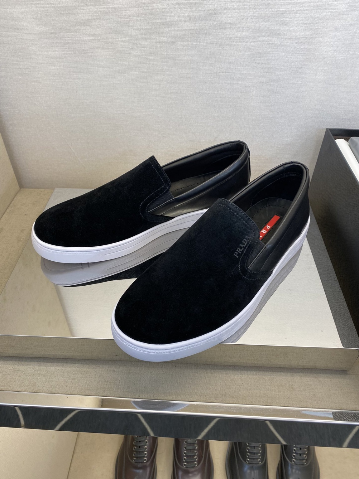 PRADA 고퀄리티, 사계절용 남성 캐주얼 슬립온 유행을 타지 않는 클래식, 독점 프리미엄 겉감: 고사 광견실 안감: 전체 송아지 가죽 EVA반발매트 포함, 오리지널 고무창 퀄리티 디테일 컷으로 질감 짱 1:1로 모든 시련을 이겨낼 수 있음
