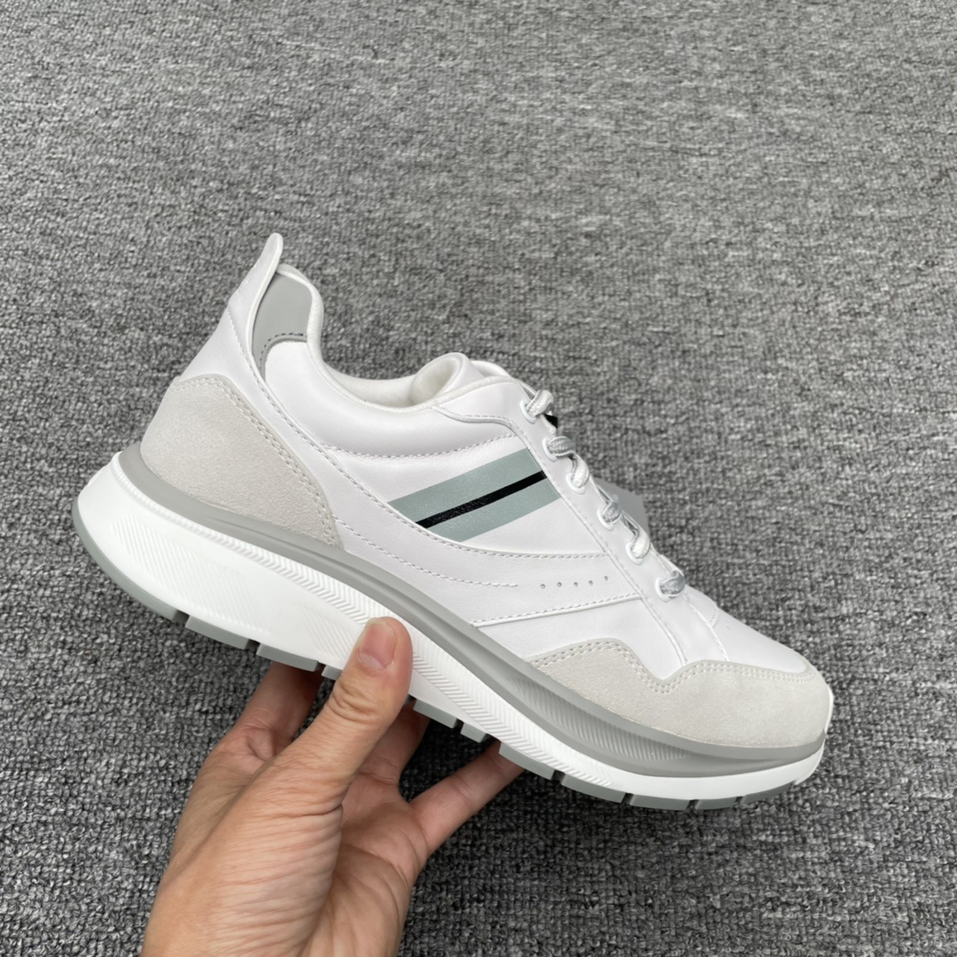 제냐 가죽 런닝화 스웨이드/소가죽 콤비네이션 엠보싱 디자인 넥라인에 고탄력 메모리 스펀지 부착 덤프트럭 하이테크 메리노 울 라이닝 큰 바닥 디자인에 투톤 컬러의 듀얼 밀도 PU 미드 레이어 TPU 브랜드 로고 필름으로 마감 처리하여 우수함 마찰력, 충격 흡수 효과 및 적당한 지지 편안함이 뛰어나고 성능이 우수함