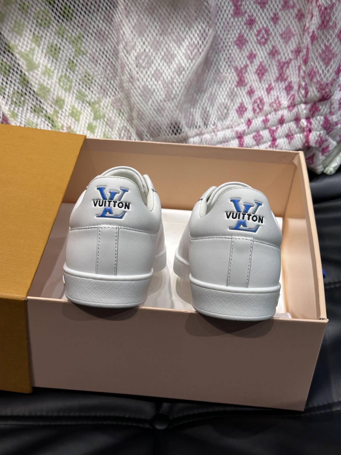 Lv 리볼리 보드화 운동화 송아지 가죽과 이번 시즌 루이비통의 많은 아이템들에 자주 등장하는 모노그램 데님 프린트로 제작 신발의 전기자수 브랜드 로고 패턴으로 포인트 편안함과 내구성이 뛰어나며 어디에나 잘 어울리는 사계절 착용이 가능한 심플한 패션 아이템