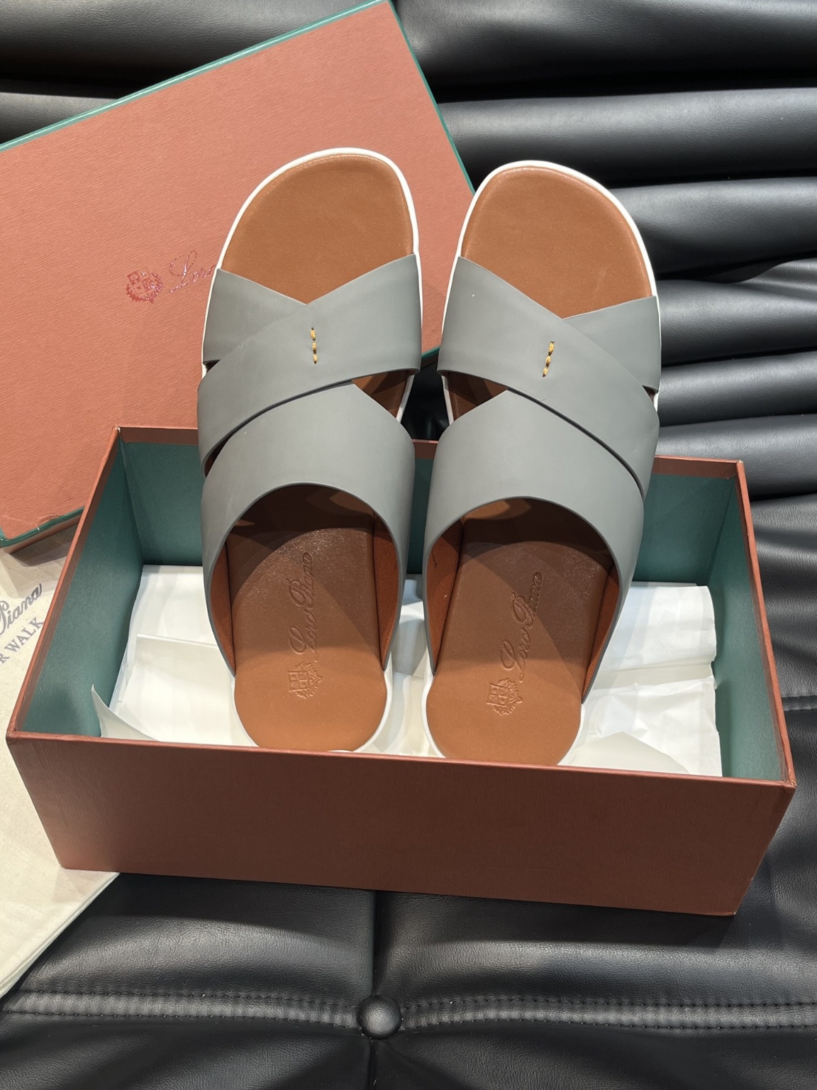 LP의 새로운 남성 소가죽 크로스 슬리퍼 고급스러운 아이템으로 우아함을 동시에 느낄 수 있으며 수입 송아지 가죽 스트랩으로 부드럽고 친근한 착용감을 선사함 완벽하고 세련된 디자인 가볍고 편안한 발