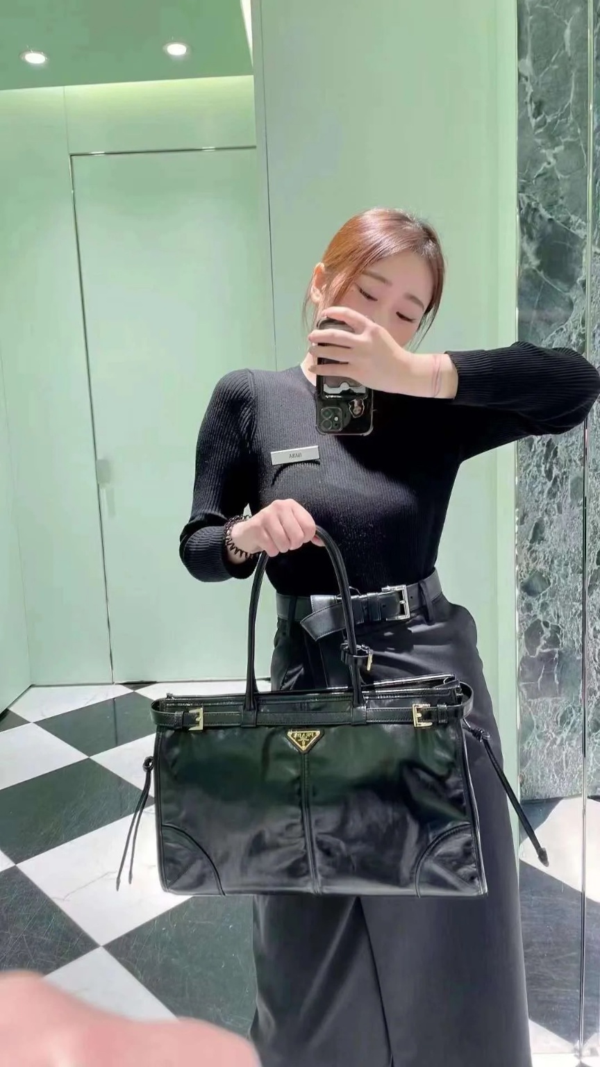 최신형 Soft Lux Bag 라지 사이즈 프라다 여자들에게 어울리는 멋진 남친룩 스타일링 가방 이 유약가죽 가방은 한눈에 빈티지한 느낌이 물씬 풍기며 초대형 쇼퍼백의 스타일, 실용성은 말할 것도 없고 정장 재킷, 루즈한 티쉬트, 청바지에 데일리룩으로 코디가능 가소성 높은 아이템으로 개성있고 복고풍에 열광하는 아이템 모델번호: 1BA433 사이즈: 38×24×12cm
