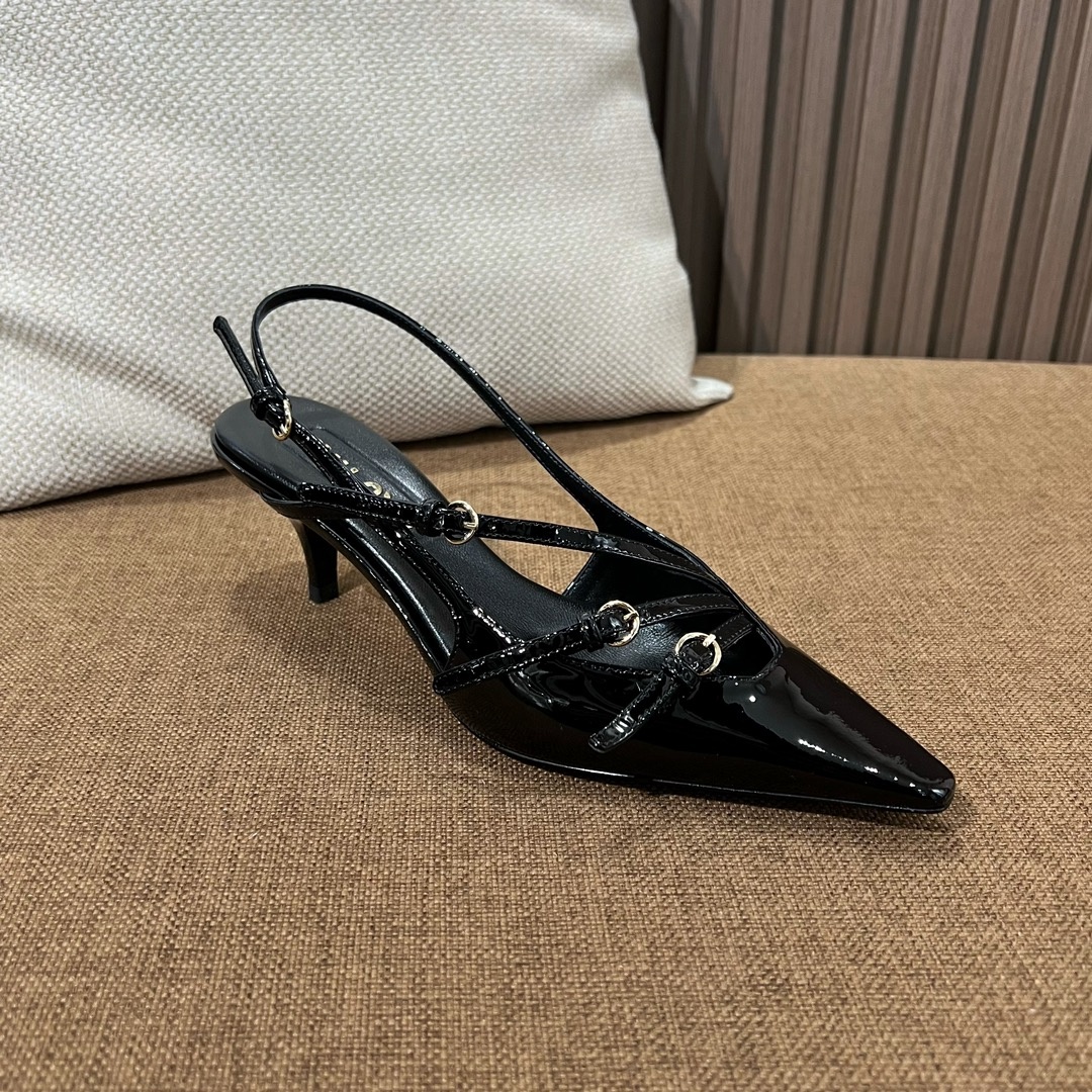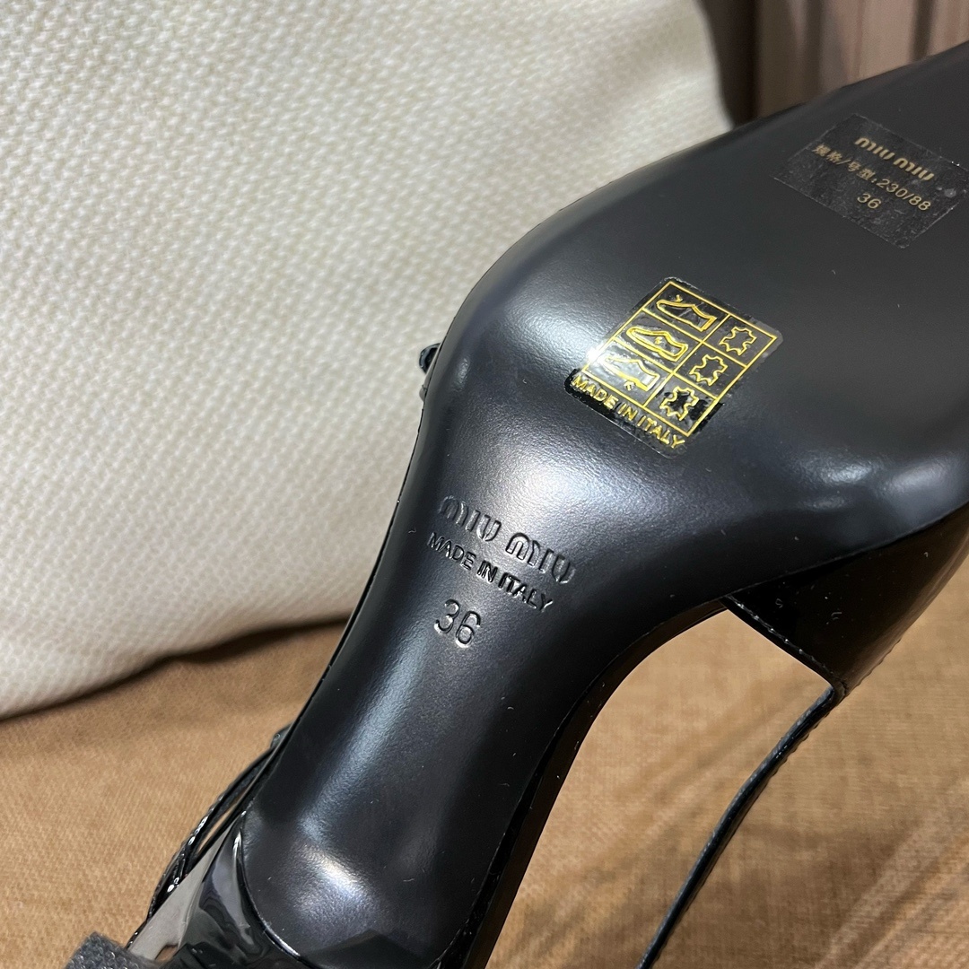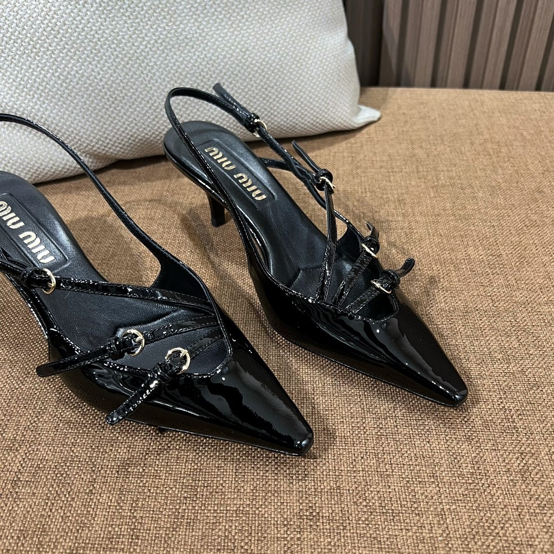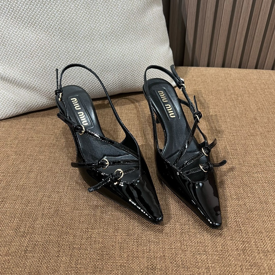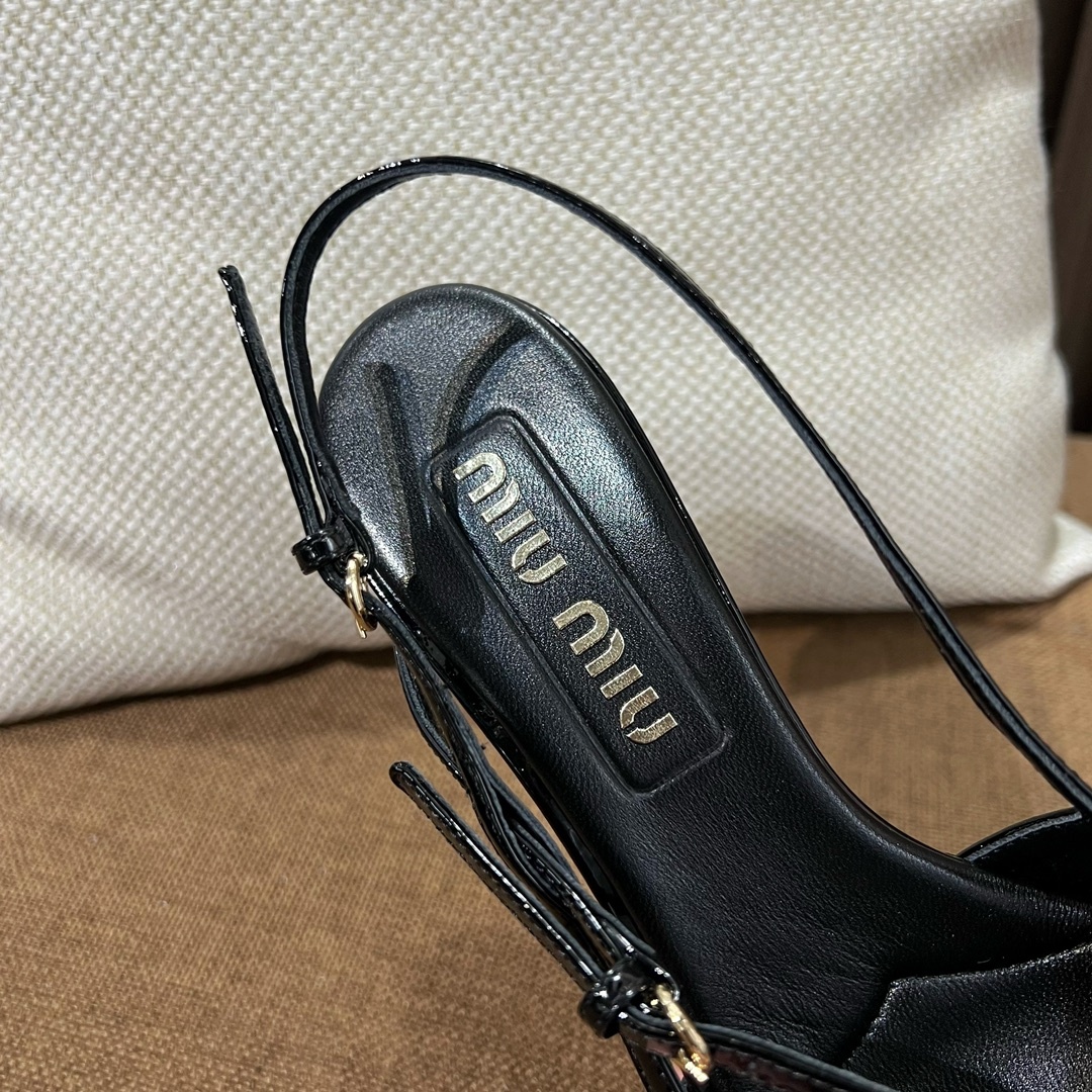 미우미우 신상 스틸레토 스리밴드 고양이 굽샌들 슈퍼 페미닌 슈즈, 유광 소가죽 페이던트 사용 부드러운 양가죽 안감, 편안한 통기성 이태리 수입 A급 가죽 플랫폼 굽: 5cm