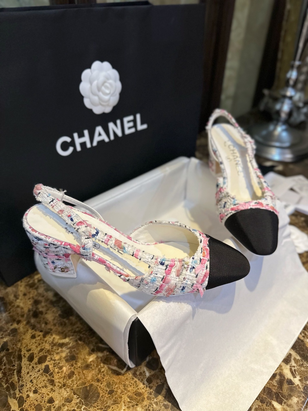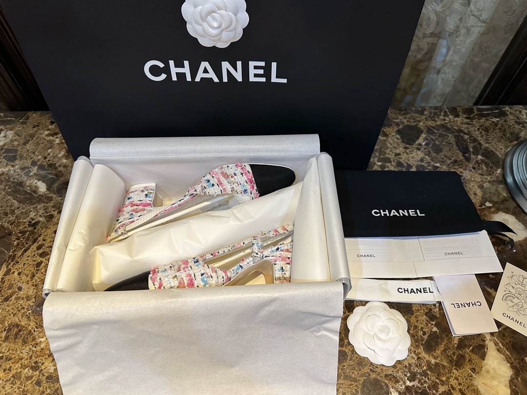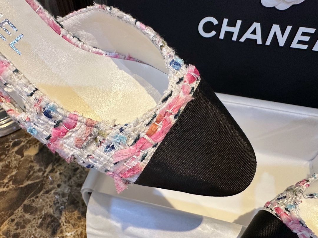샤넬 23C 컬러 트위드힐 슬링백 핑크 트위드, 컬러가 너무 예뻐요 한눈에 반한 귀요미, 핑크 플라워 배색 소녀다움이 물씬 풍겨 봄여름의 맛