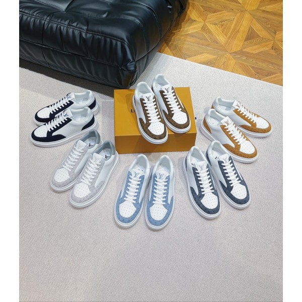 LV 남성 클래식 스니커즈 부드러운 소가죽을 위해 클래식한 모노그램 프린트를 모사 고무창은 도톰하면서도 가벼움을 잃지 않았으며 루이비통 로고 엠보가 포인트 라이닝과 테크놀로지 라이닝이 더해져 편안함을 업그레이드 이태리 수입 송아지 가죽 내피는 고급스럽고 편안하며 오리지널 플랫폼으로 가볍고 마모에 강함 핸드메이드로 제작되며 디테일이 퀄리티를 결정함