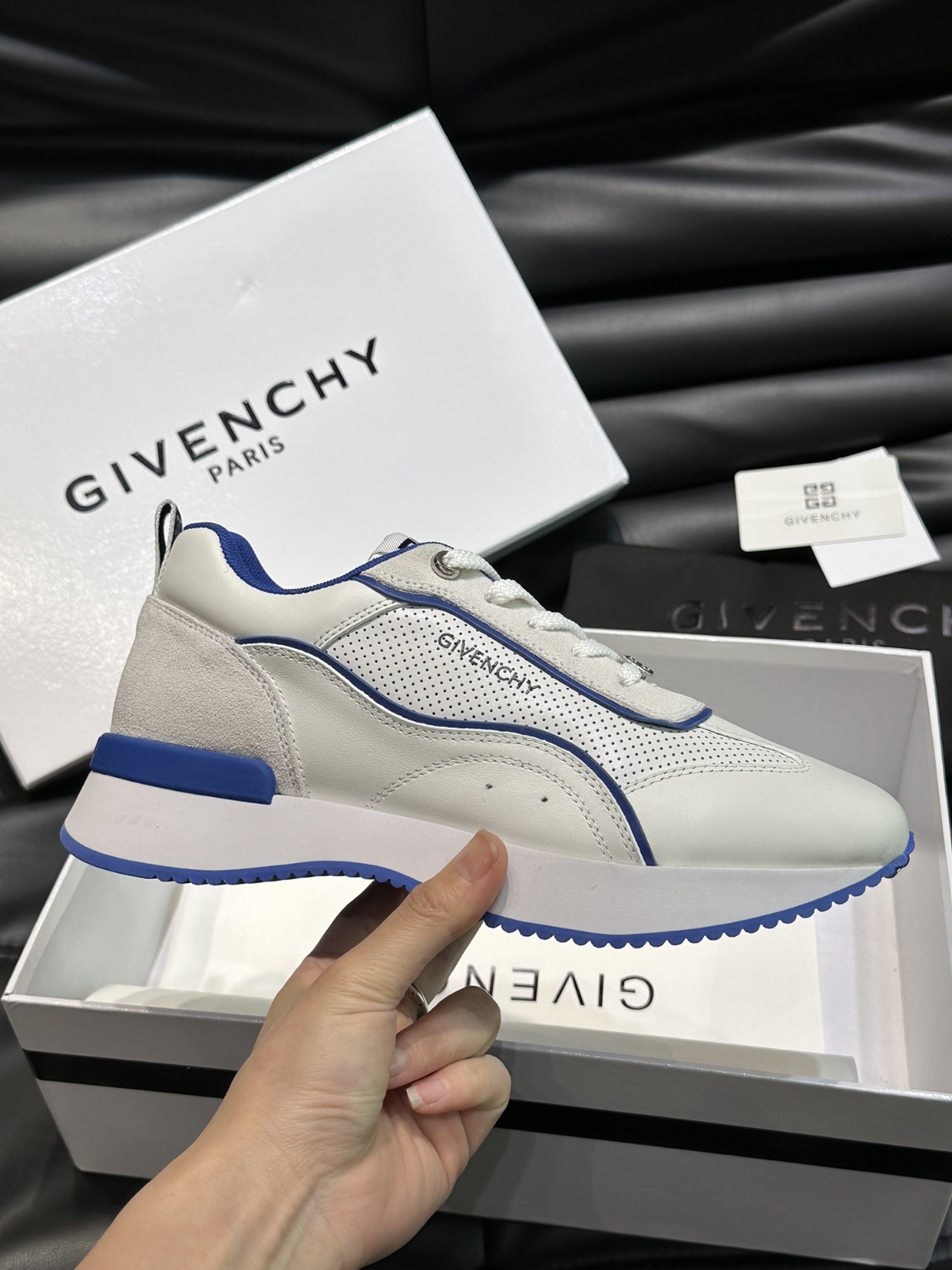 지방시 새로운 남성 키높이 캐주얼 스니커즈 고품격 송아지 가죽 패치워크 디자인 발끝이 멋스럽고 4CM 키높이로 카리스마를 높여주며 착화컬러 배합 디자인으로 4G LOGO 로고와 입체적인 GIVENCHY 로고가 장식 가벼운 TPU발포창으로 가볍고 편안한 발감