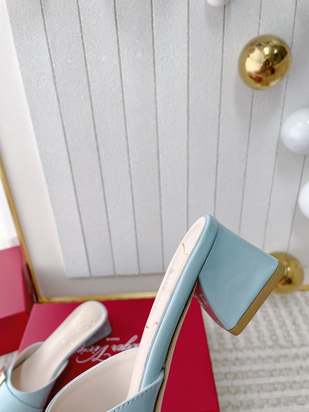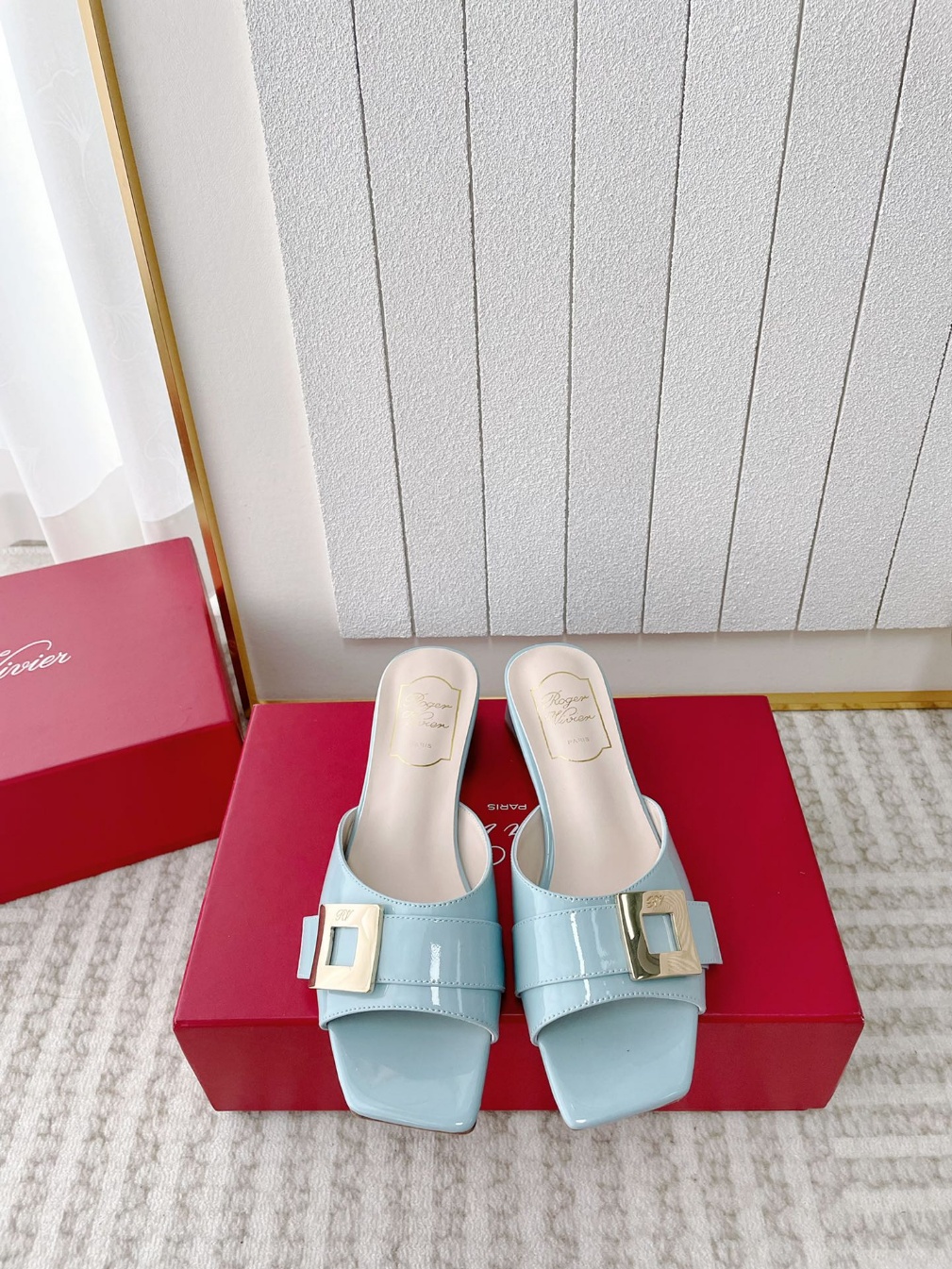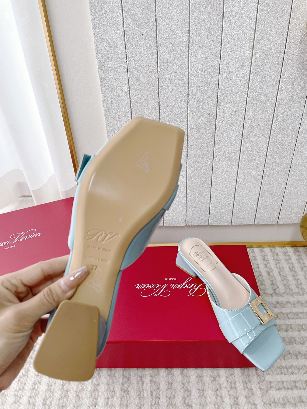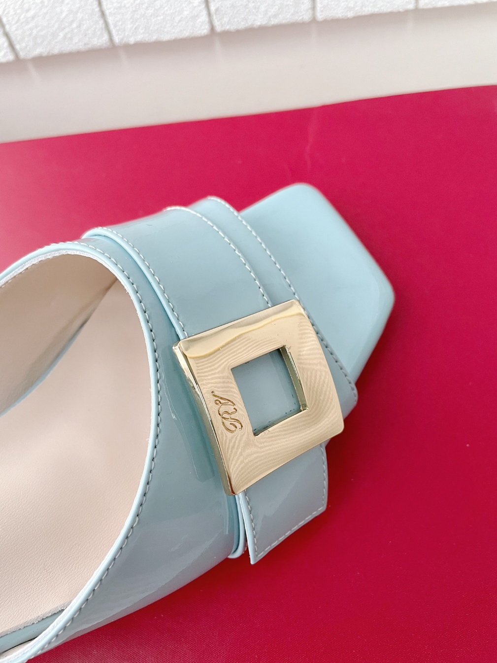 로저비비에 24 에나멜 큐빅 여성 슬리퍼 살짝 떨어지는 라인으로 클래식함을 연출함 창: 오리지널 리얼 가죽 대창 소재: 오리지널 소가죽 / 데님 안감: 수입 양가죽 하드웨어: 오리지널 1:1 맞춤 스퀘어/다이아몬드 세팅 굽: 4.5cm