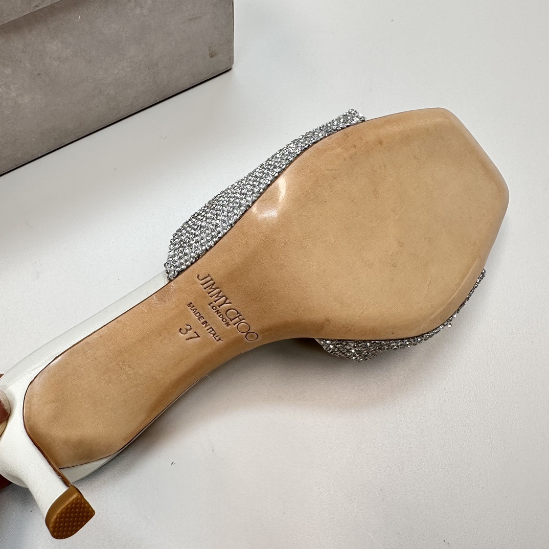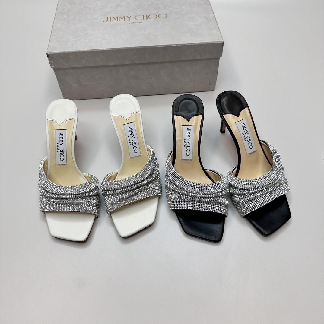 지미추 JC 24ss 봄여름 신상 핫피스 슬리퍼 구매대행 품질, 비시장 제품 큐빅 컬러 톤 모두 오리지널과 동일 오리지널 커스텀 체인 속받침 통가죽 이태리 리얼 가죽 통굽 굽: 7.5cm