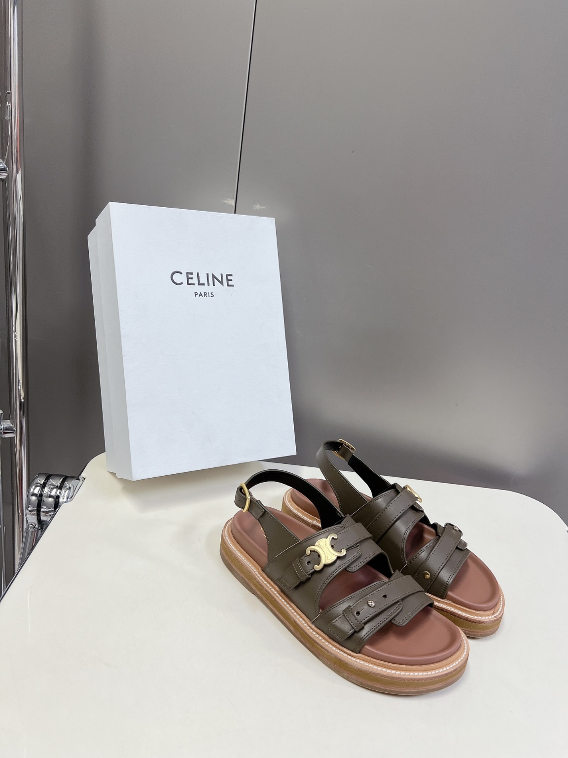 CELINE 봄여름 신상품 개선문 빈티지 로마 샌들 매장 출입에 스트레스 없음, 중공업판 로우 버전 거부, N차 테스트 재질: 1단 수입 소가죽 중창 스트랩 오리지널 세트 포장