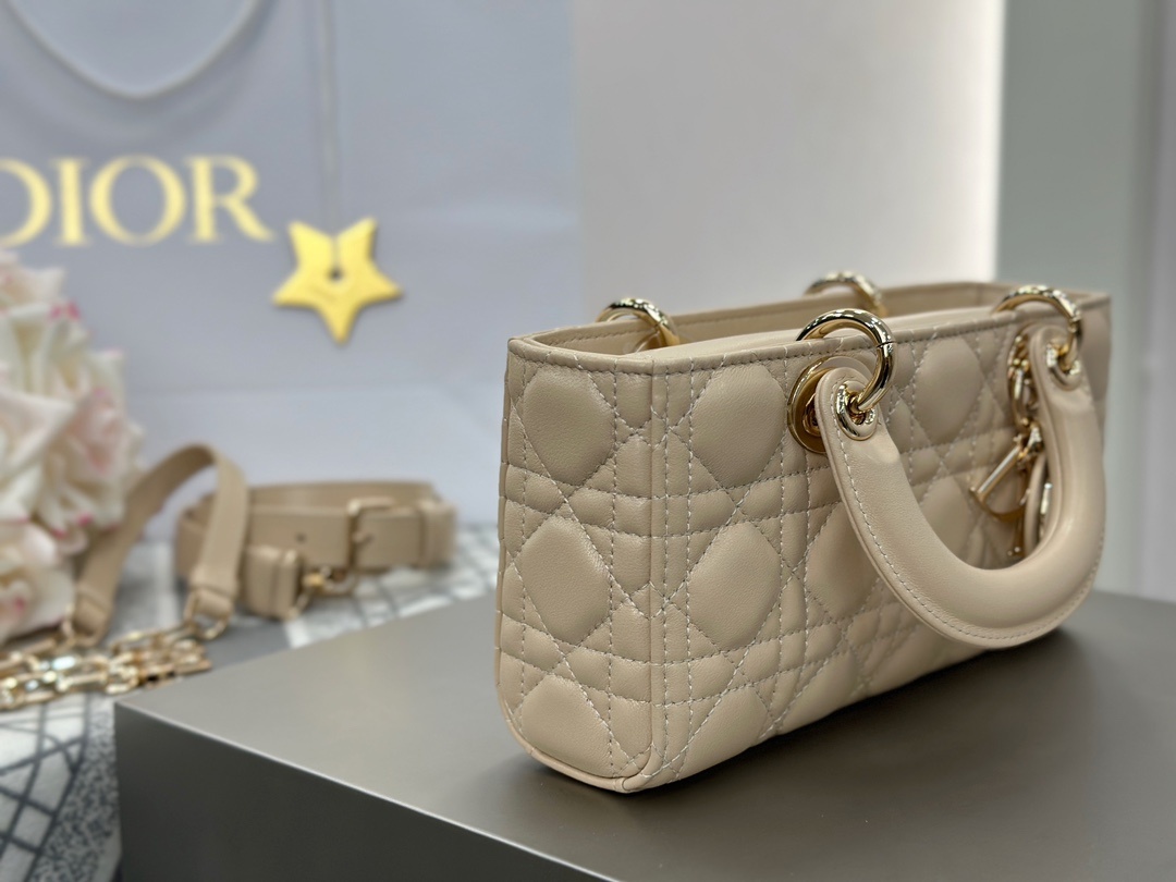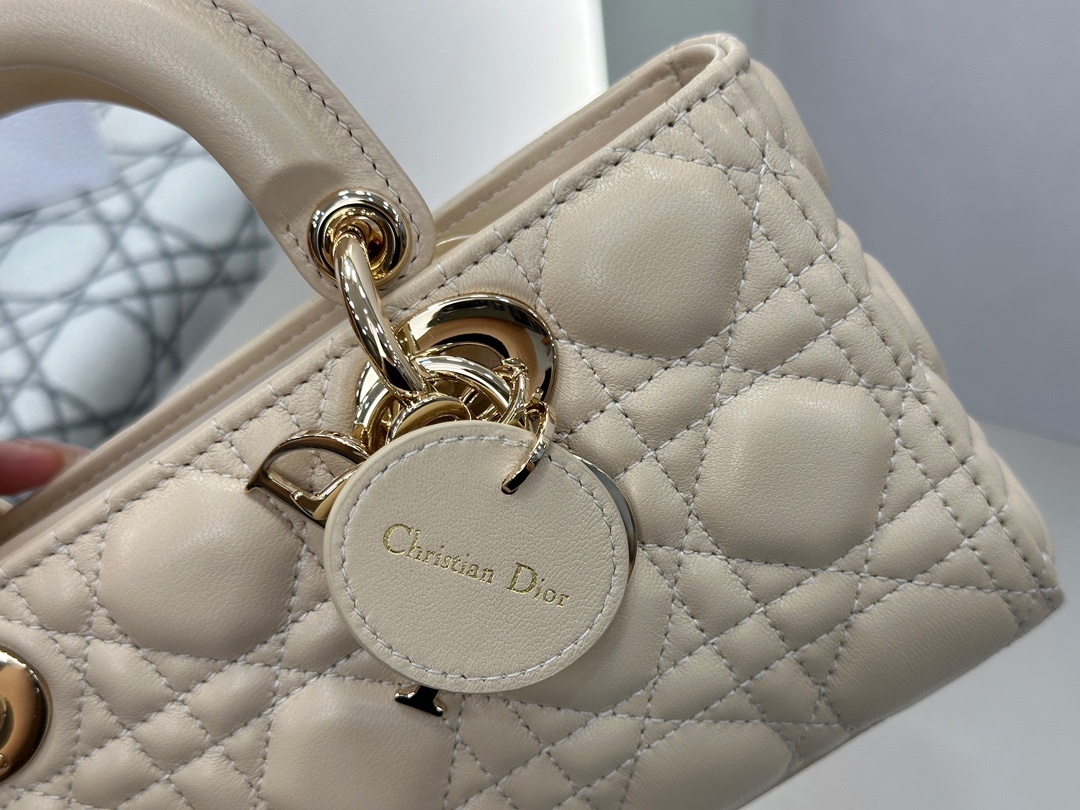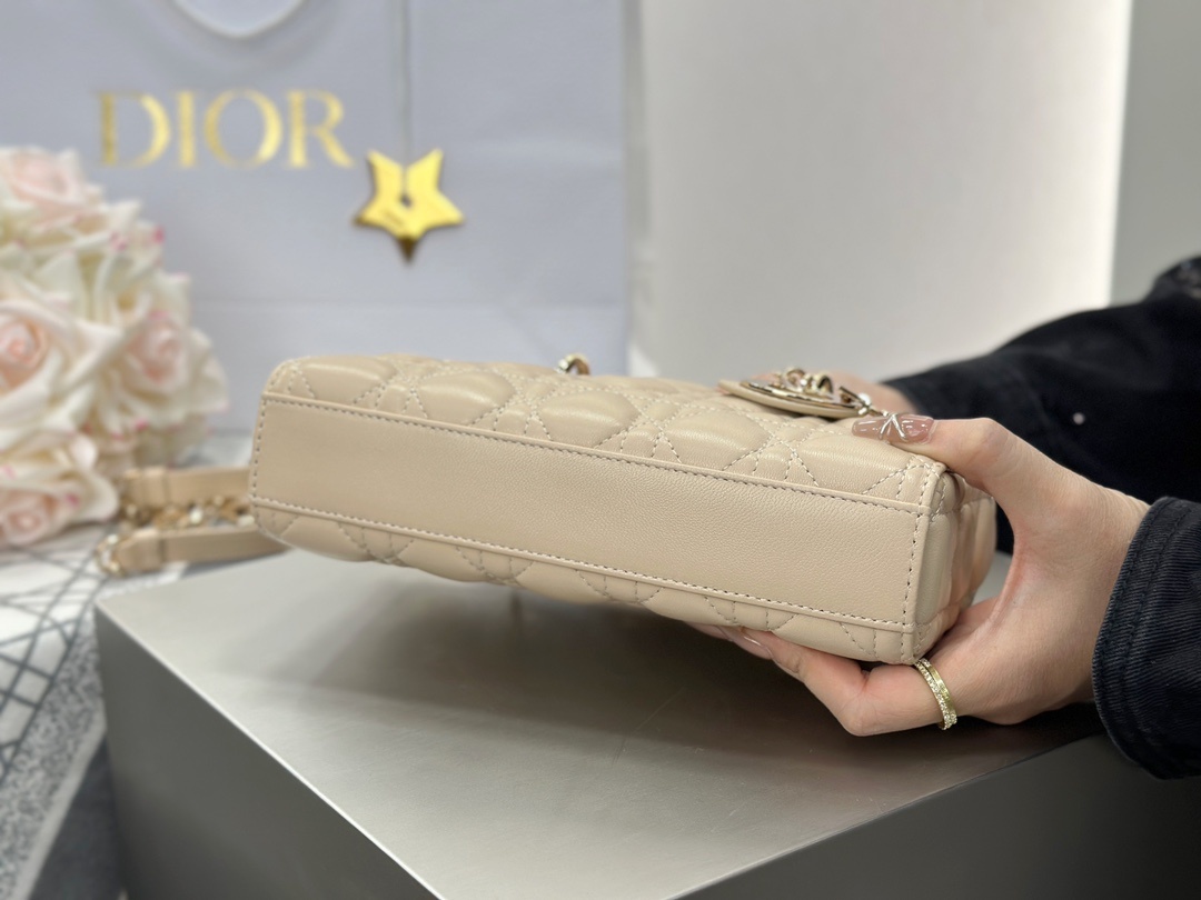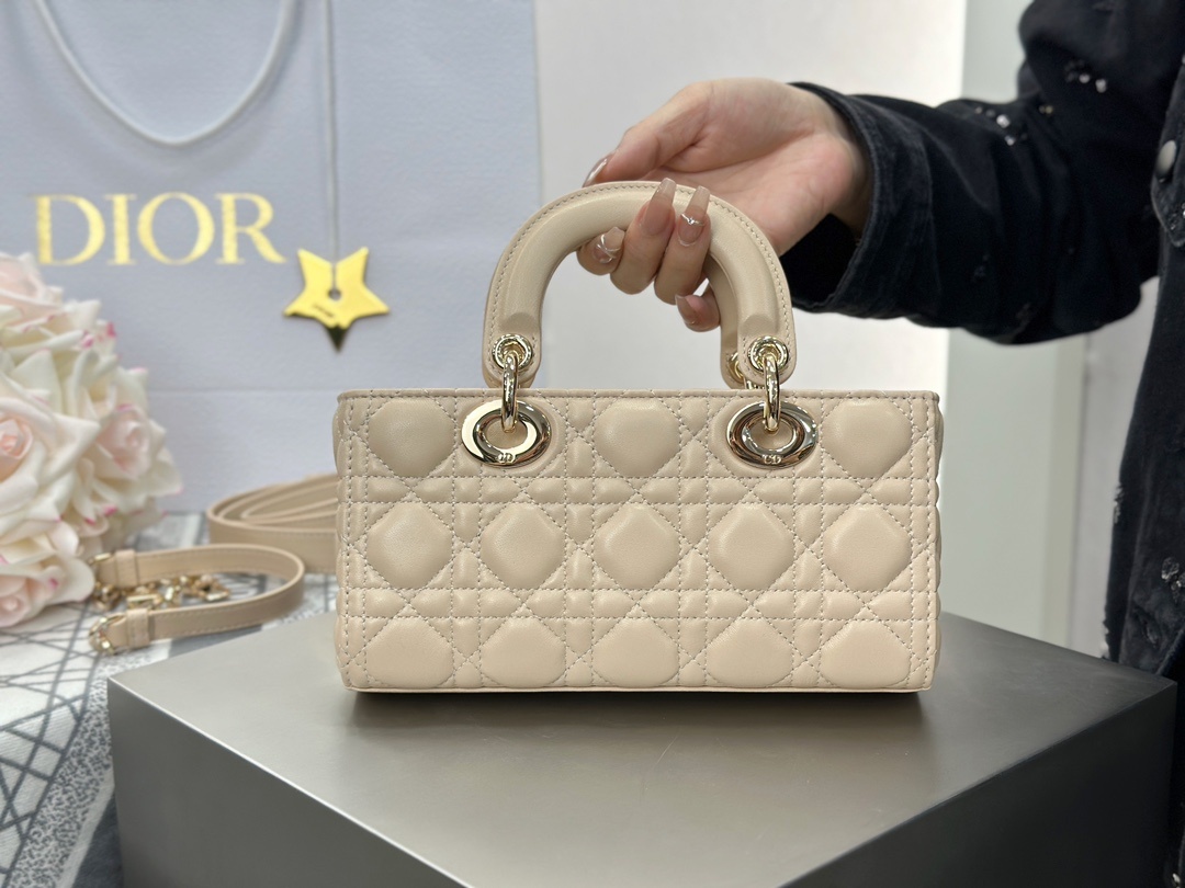 디올 Lady D-Joy 베이지 스몰 수입 오리지널 가죽에 라이트 골드 메탈 휴대폰, 화장품을 정상적으로 담는 것은 문제없음 size: 22x12x6cm