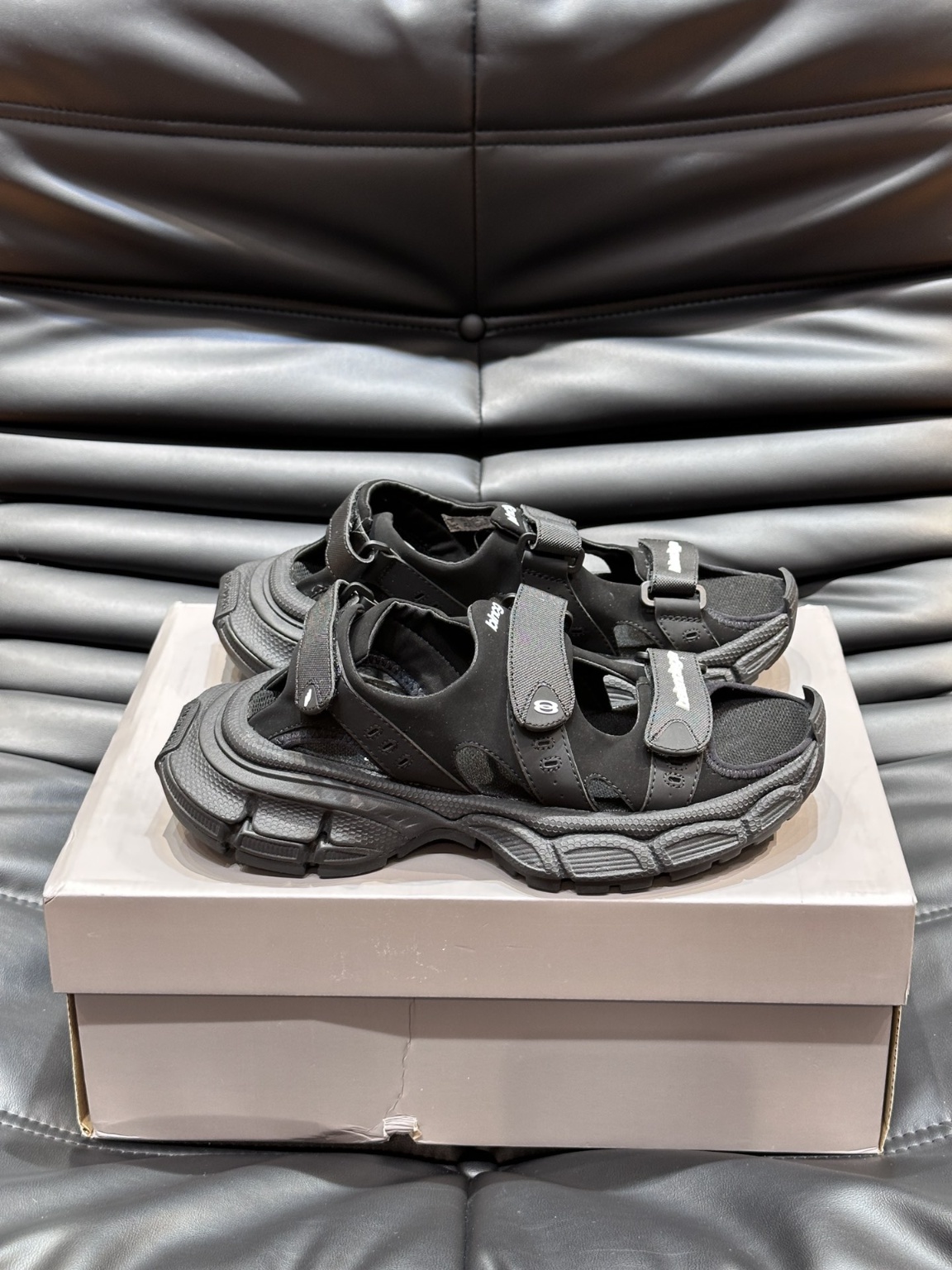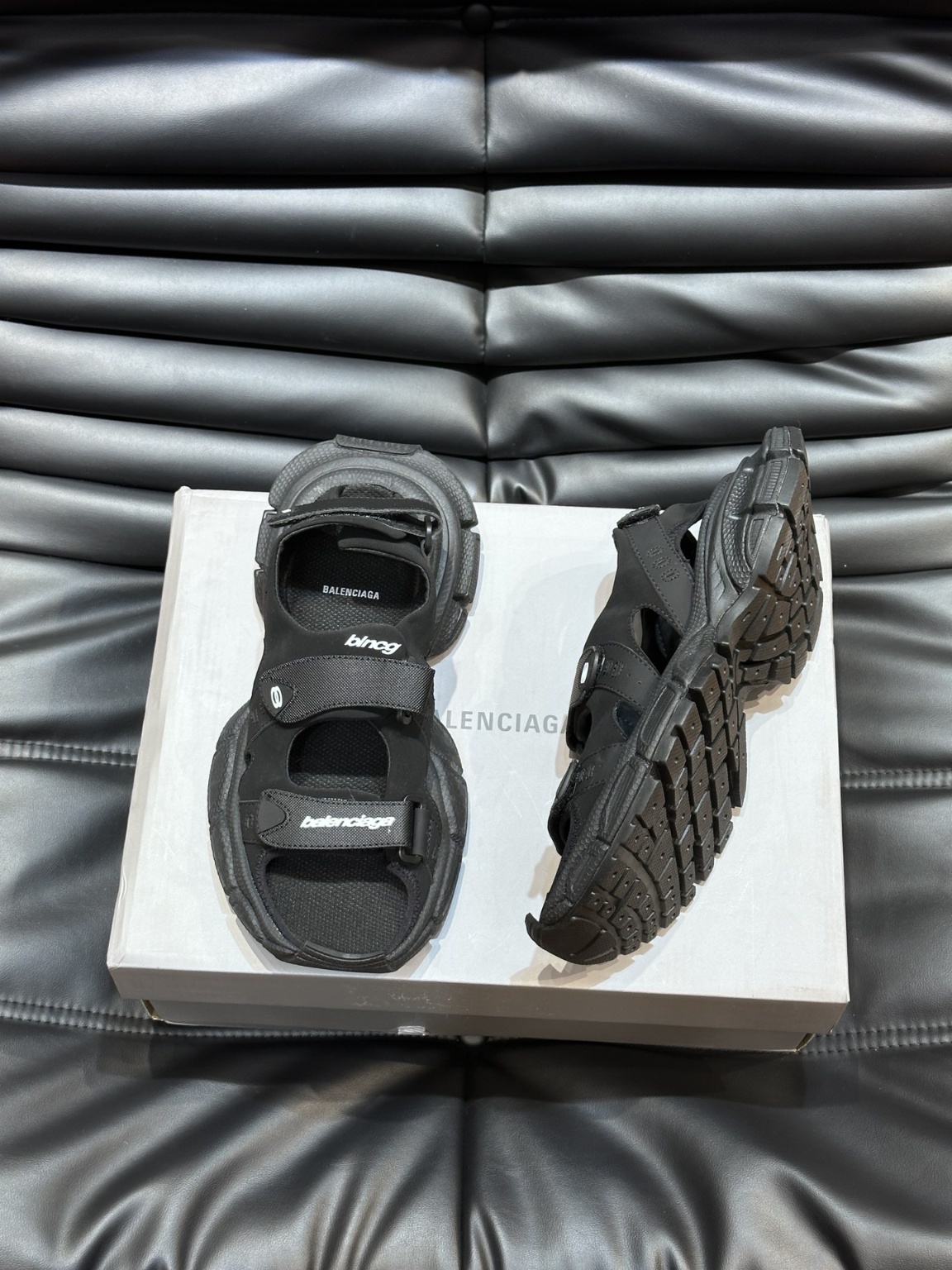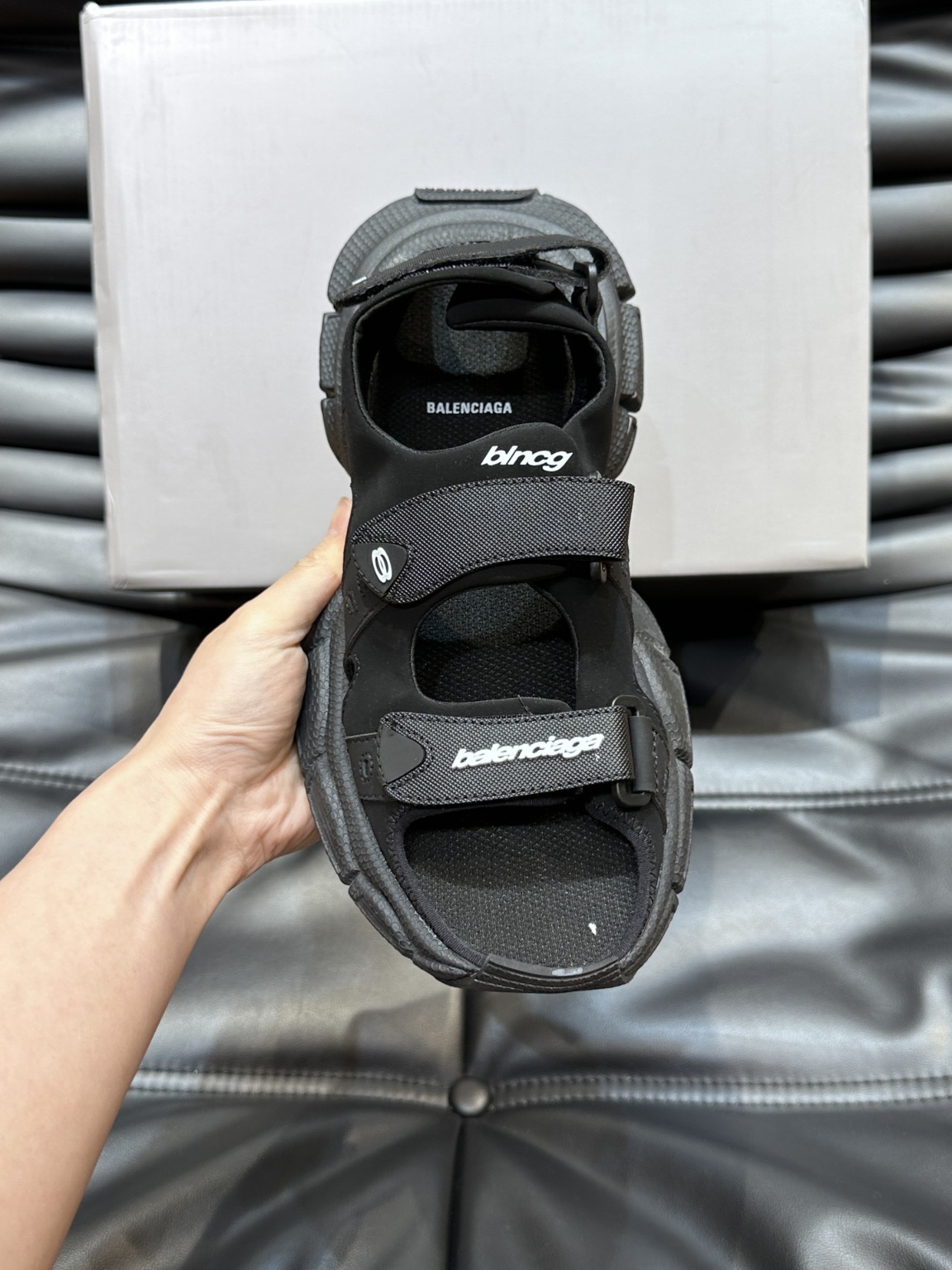 발렌시아가 3XL 커플 샌들 오리지널 버전, 중공업 제작 모든 액세서리는 맞춤 제작 정품 컷팅 정확한 폰트 로고, 굵기, 위치, 크기, 사이드 TPU 통기구는 이탈리아 오리지널, TPU 소프트 바닥 오리지널은 Balenciaga 메인 플로어 로고와 동일하며 입체감이 뛰어나며 오리지널 가죽 소재, 오리지널 메쉬 신발 표면은 구제 처리, 세줄 벨크로 조절, 가볍고 편안함