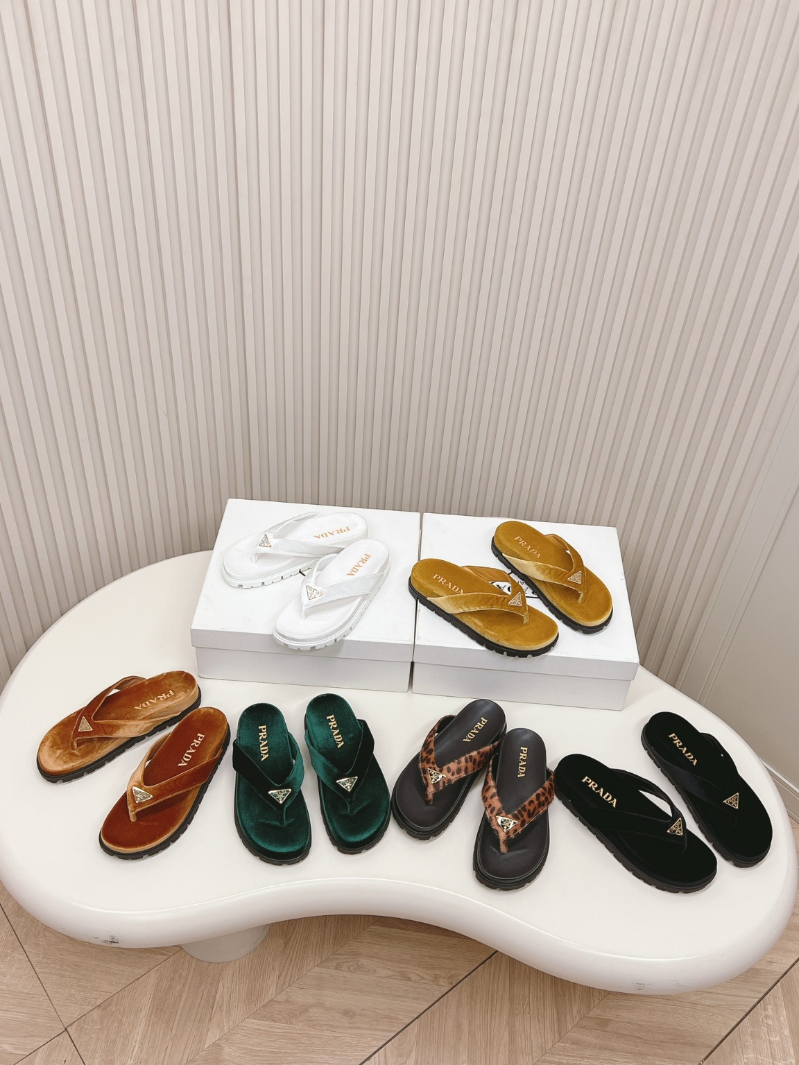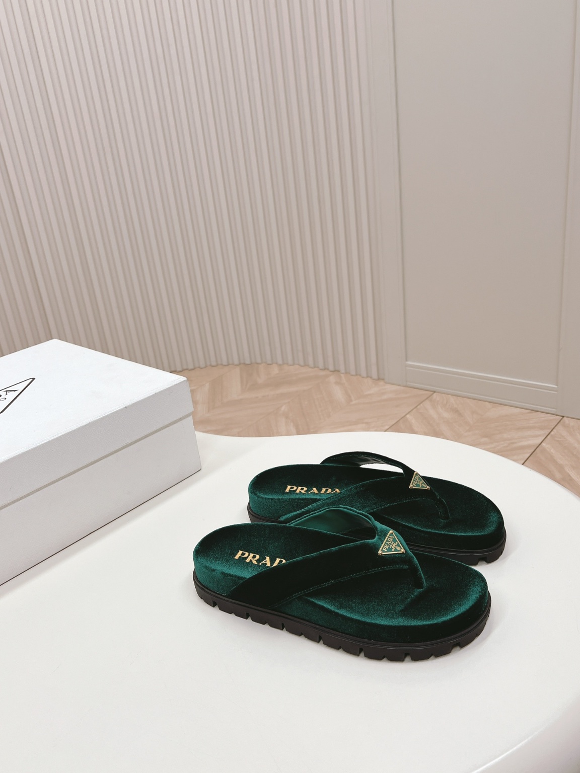 프라다 2024 봄여름 신상 슬리퍼 벨벳 통굽으로 편안함과 모던함을 동시에 느낄 수 있음 겉감: 오리지널 커스텀 실켓 벨벳, 말털 안감: 오리지널 커스텀 양가죽 속깔개 대창: 오리지널 몰드 미끄럼 방지 대창