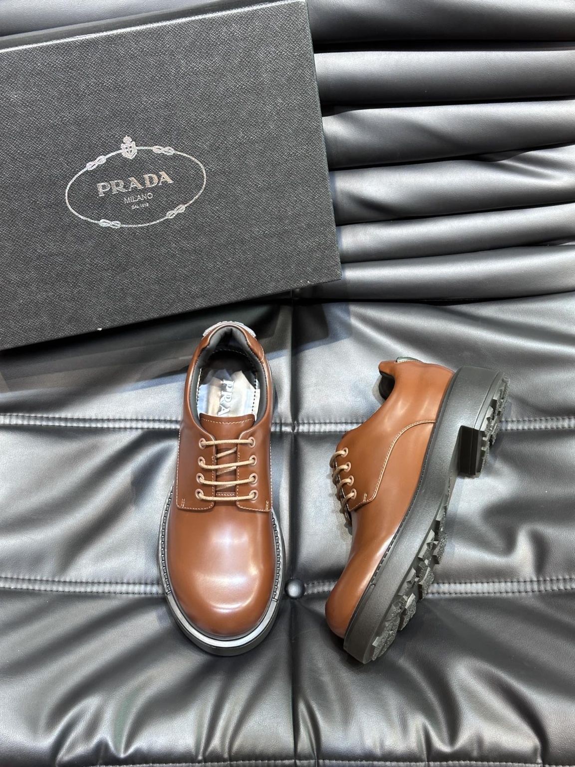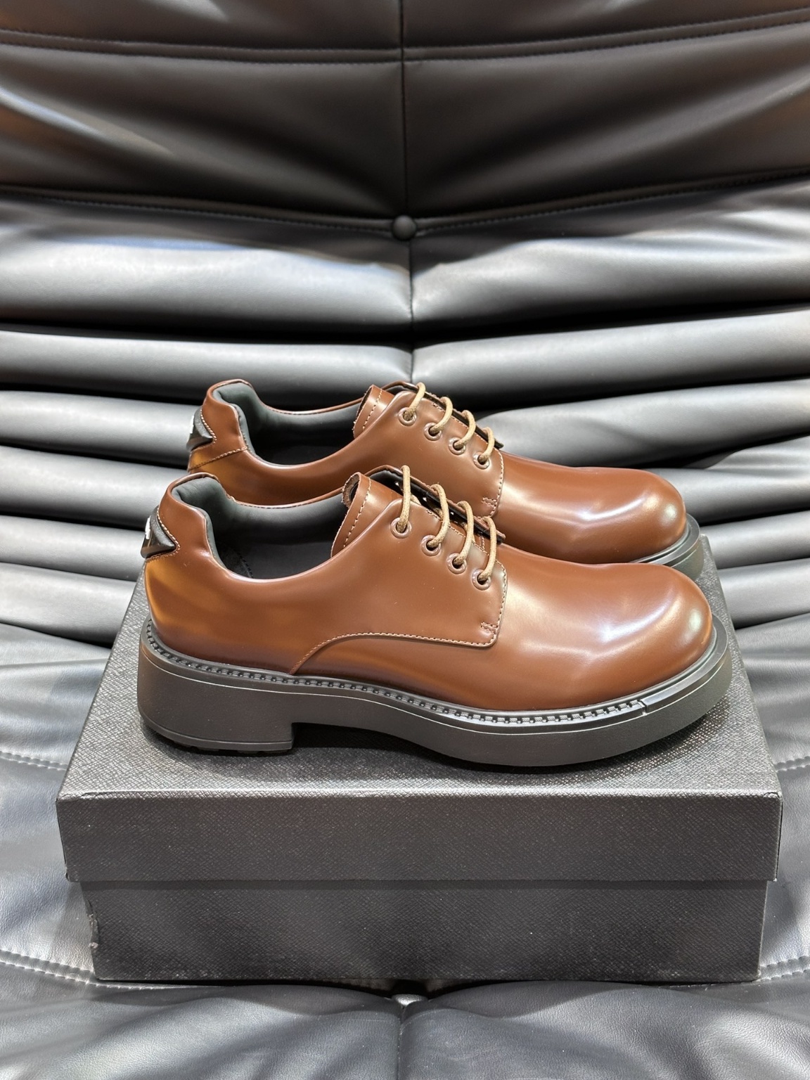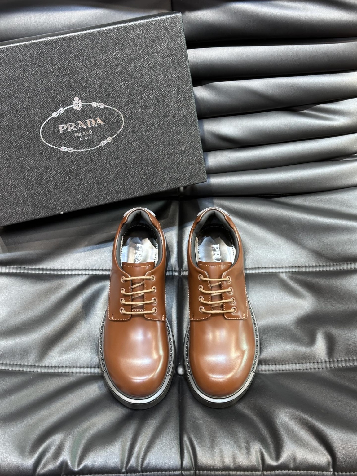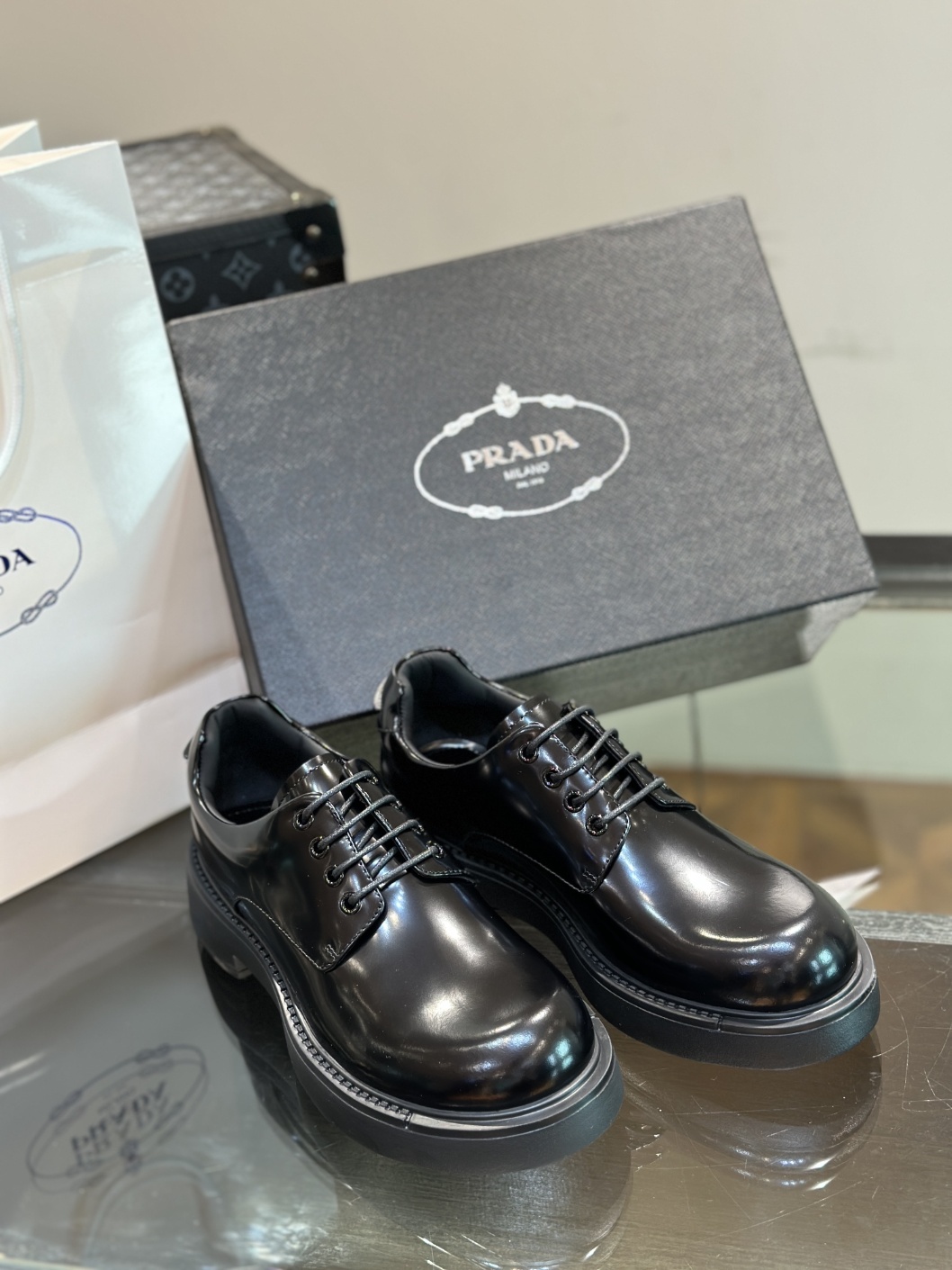 프라다 키높이 정장 캐주얼 구두 클래식 라인, 더비슈즈 타입의 우아하고 고품격 소가죽 깔창, 안감 송아지 가죽 두꺼운 고무 재질로 바닥이 오래도록 마모되지 않고 발에 편안함을 줌