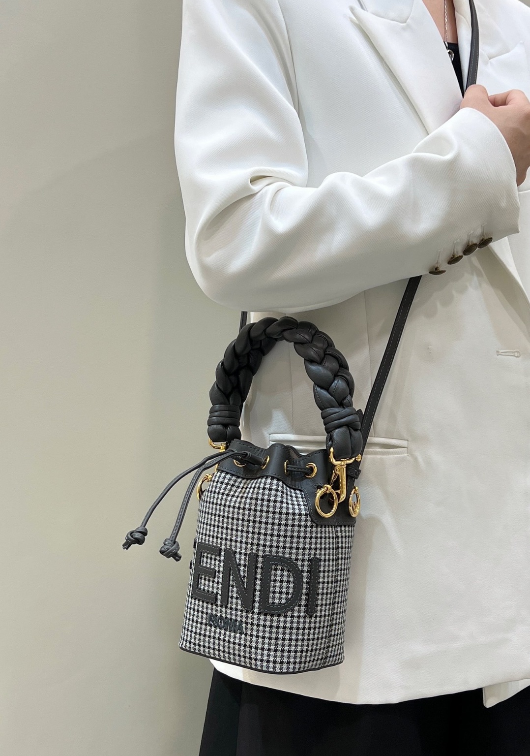 펜디 하운드투스 버킷백 디자인이 독특하며 우븐 토트와 매치하여 여성스러움을 강조 송아지 가죽과 질감이 뛰어난 패브릭 믹스매치 초나이스 핸드폰 다섯대 용량 완전 실용적 사이즈 12x10x18.5cm
