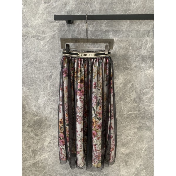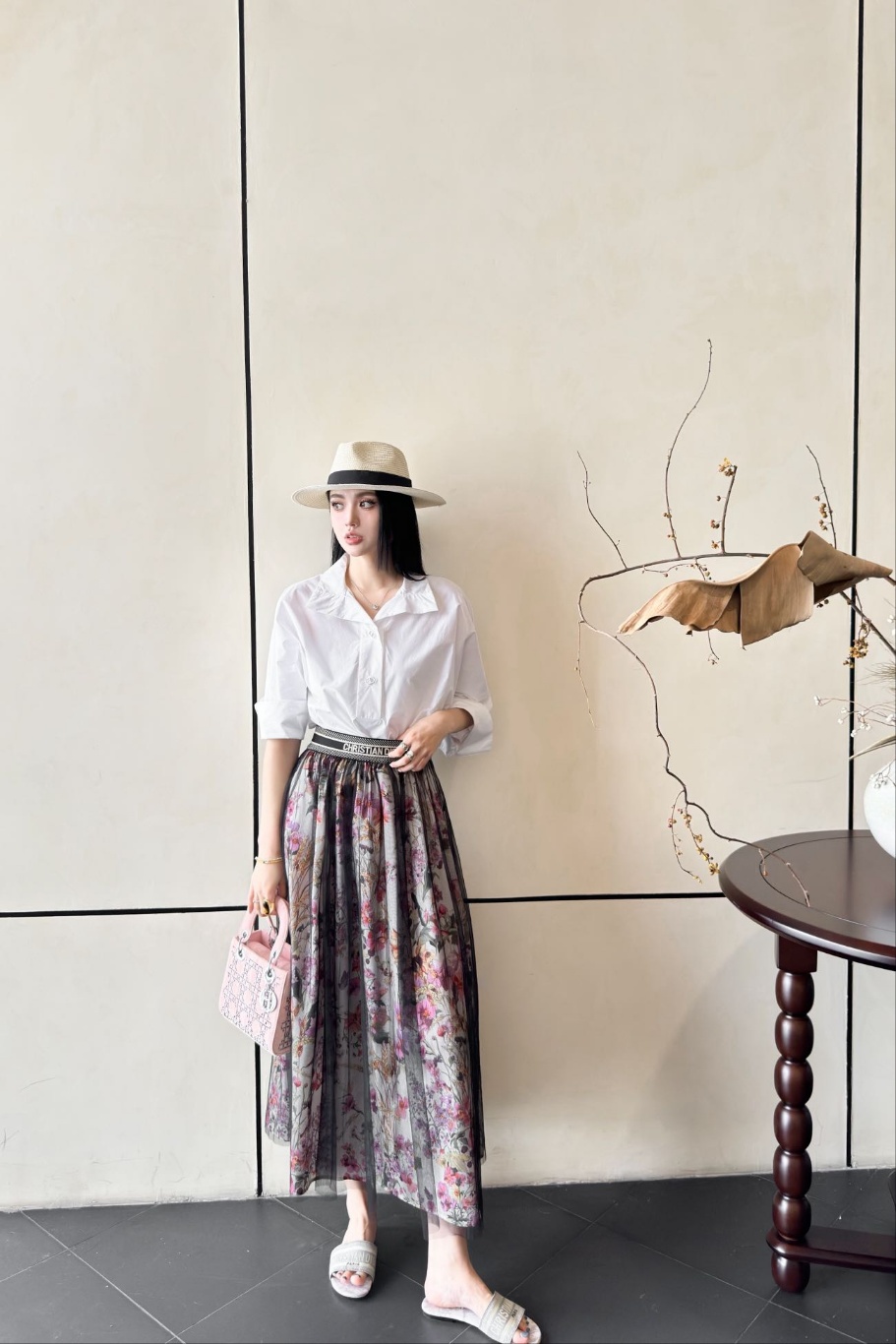 Dior 24 봄여름 신상 플라워패턴 이중망사 스커트 플라워 프린트, 예쁜 버블 미니멀한 하이웨이스트 밴딩 핏 기장이 딱 슬림한 부분을 노출시켜주어 날씬해 보임