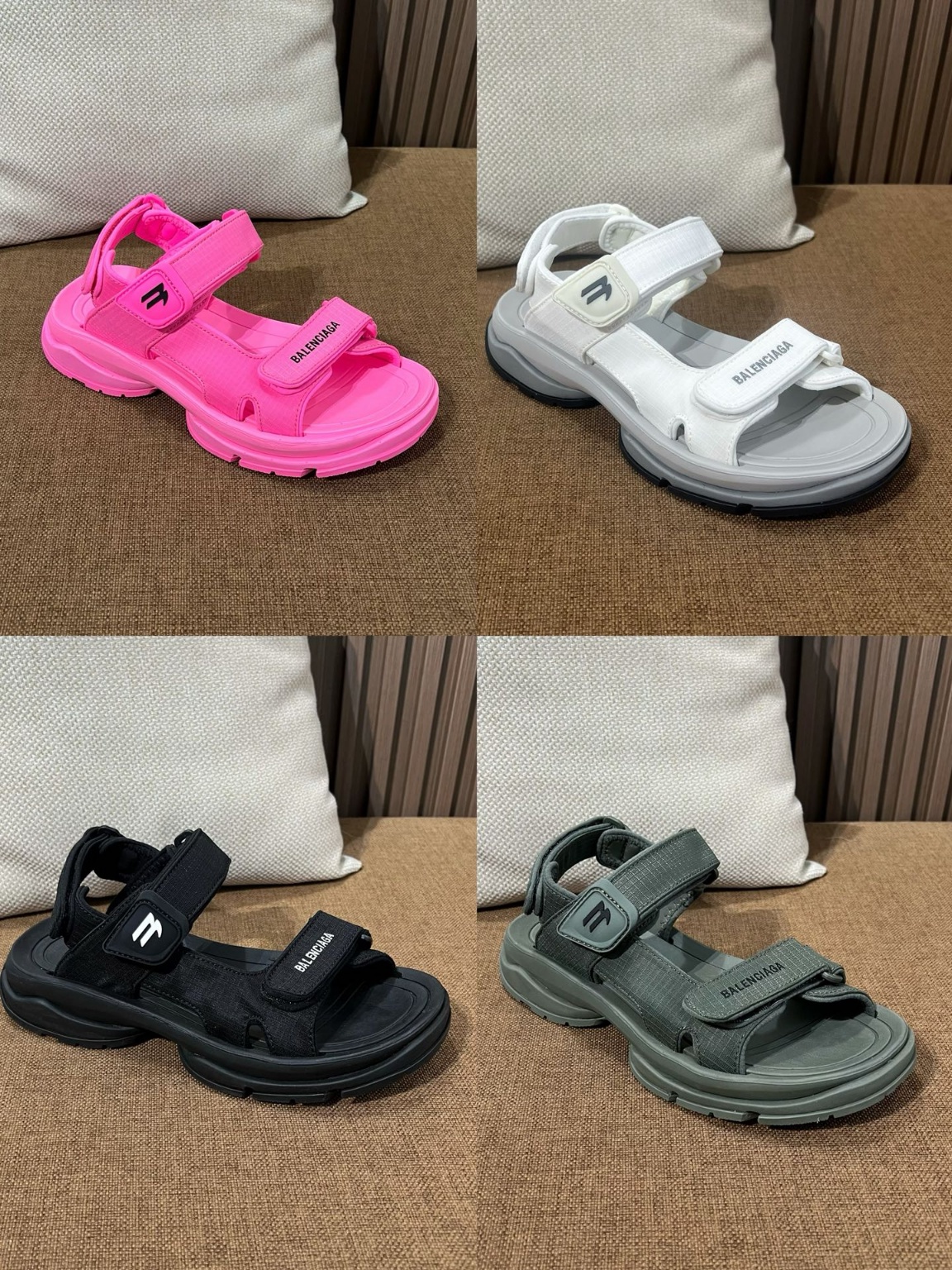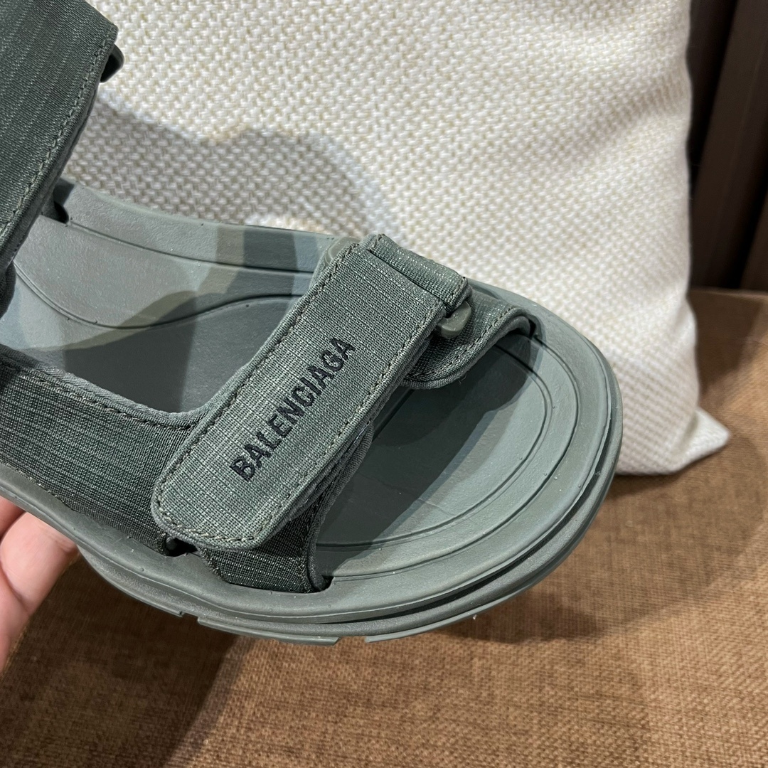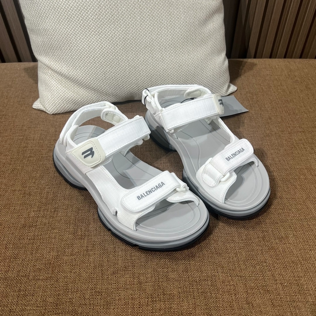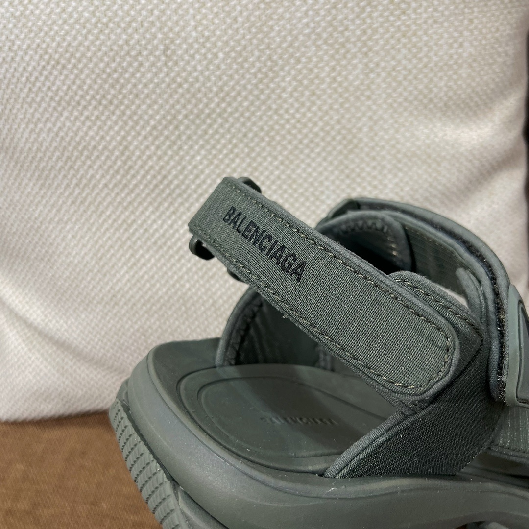 발렌시아가 핫 스니커즈 투리스트 벨크로 샌들 키높이에 다리도 가늘어 보이고 정말 예쁜 핏 필수 아이템 겉감은 메쉬 소재와 폴리우레탄을 사용하였으며 가죽은 포함되어 있지 않음 통굽 마모 효과, 앞코 가장자리와 뒤꿈치 마이크로 로고 작업 세부 사항은 보는 즉시 알수 있음