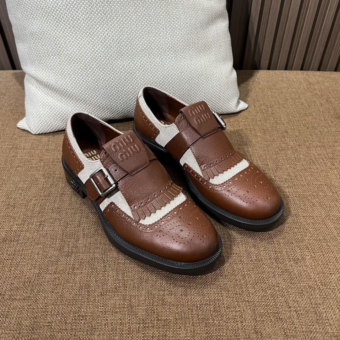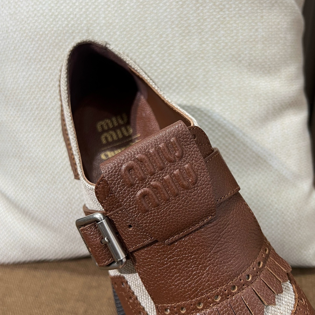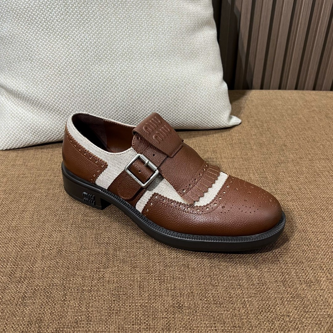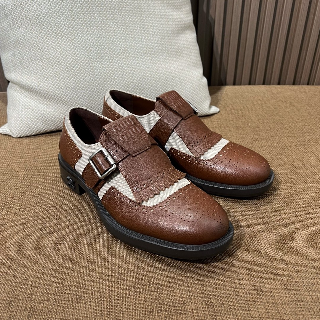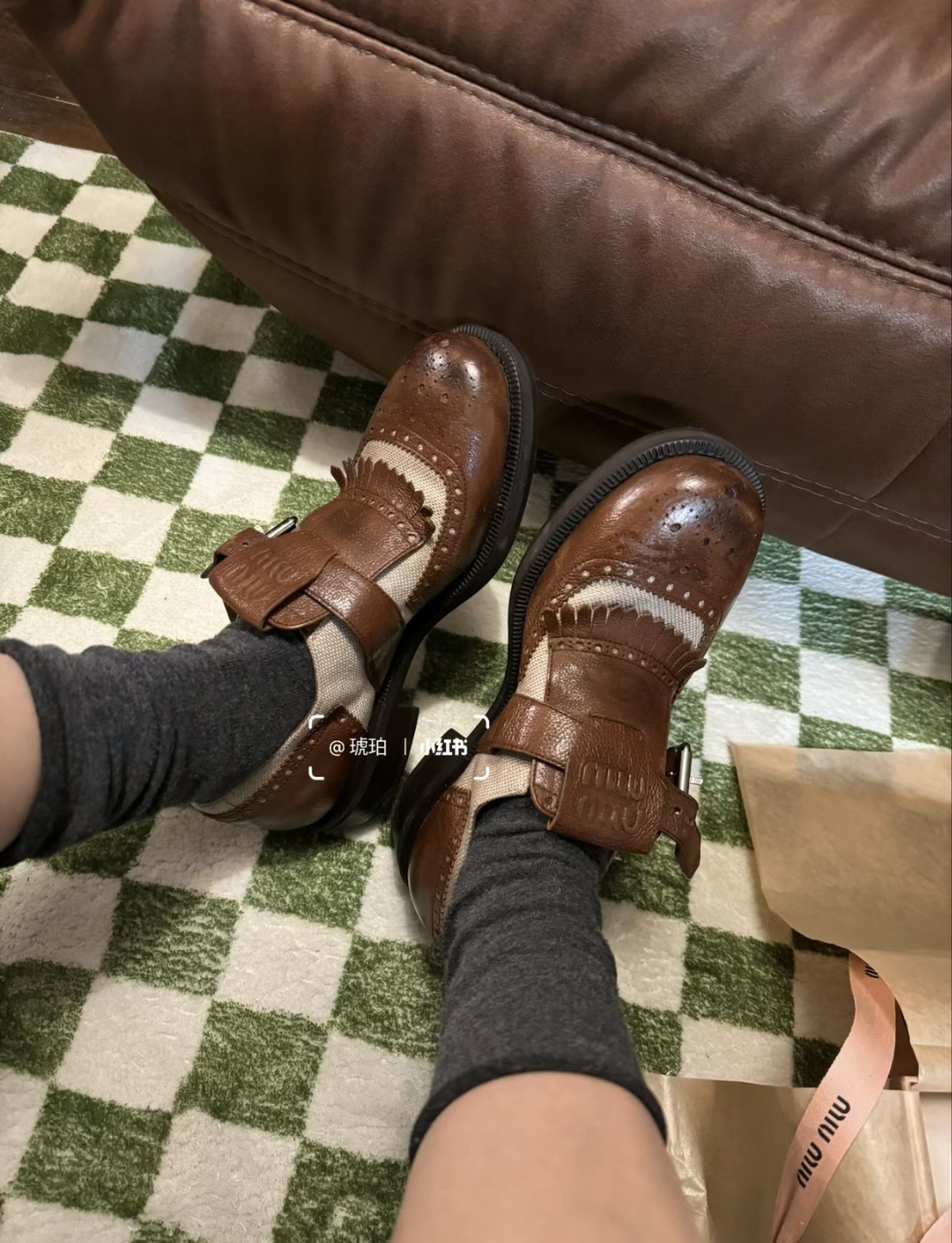 미우미우 X churchs 컬래버레이션 옥스퍼드 브록 슈즈 시그니처 디자인과 정교한 공예품 MIU MIU의 반항적인 영혼과 어우러져 클래식함을 뛰어넘는 독창적인 디자인으로 식상하지 않은 조화를 이룸 겉감 맞춤 수입 리치 무늬 소가죽 송아지 가죽 안감까지 통풍이 잘 됨 내마모성 고무창 단독 커스텀 굽: 3cm