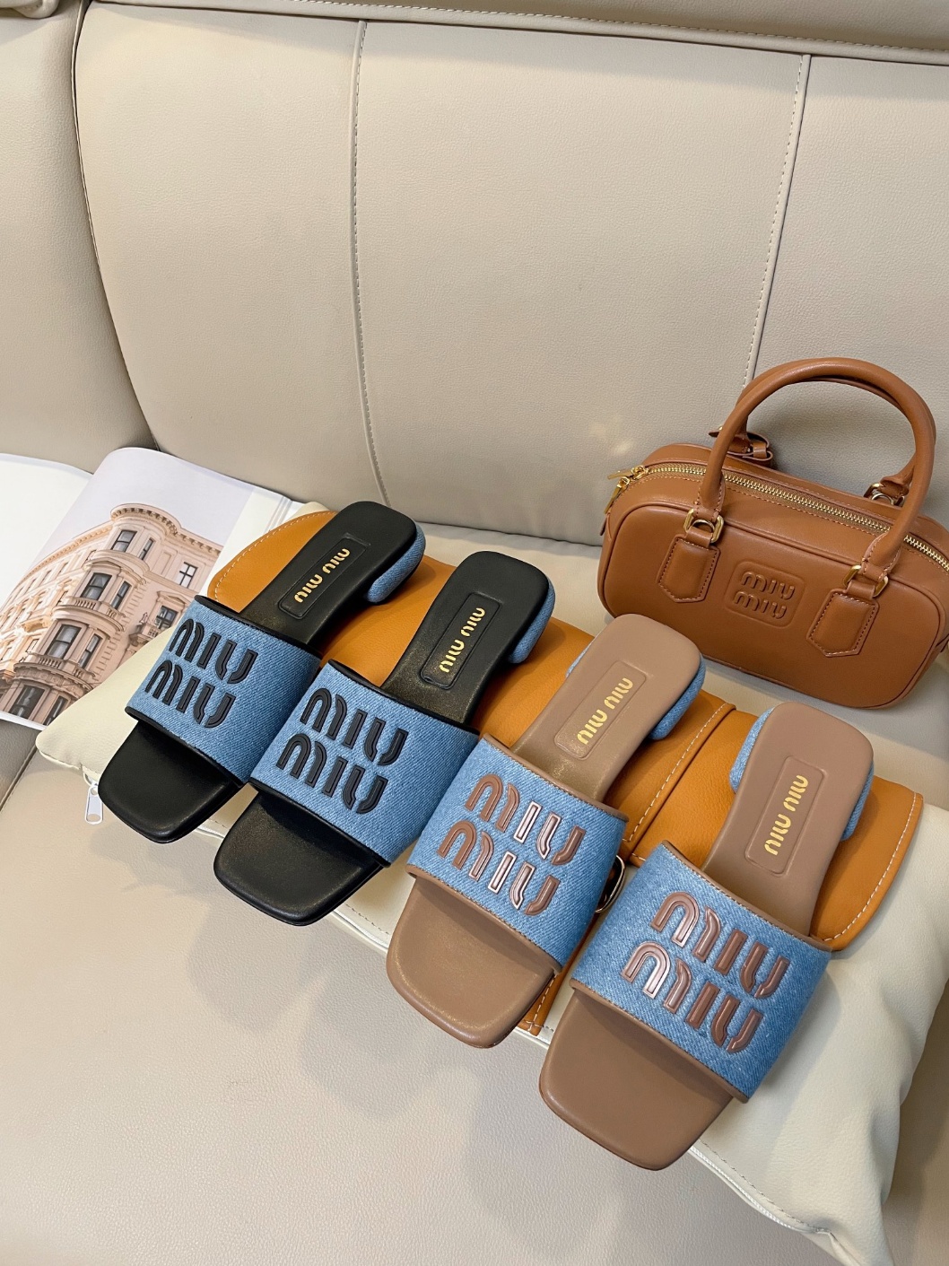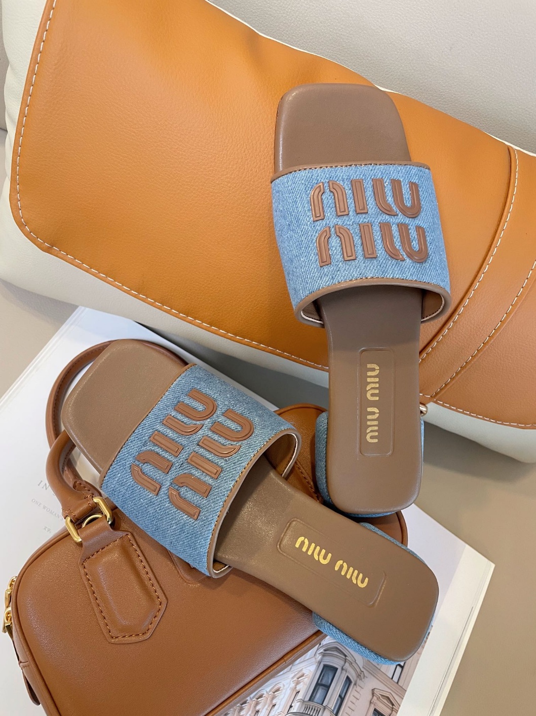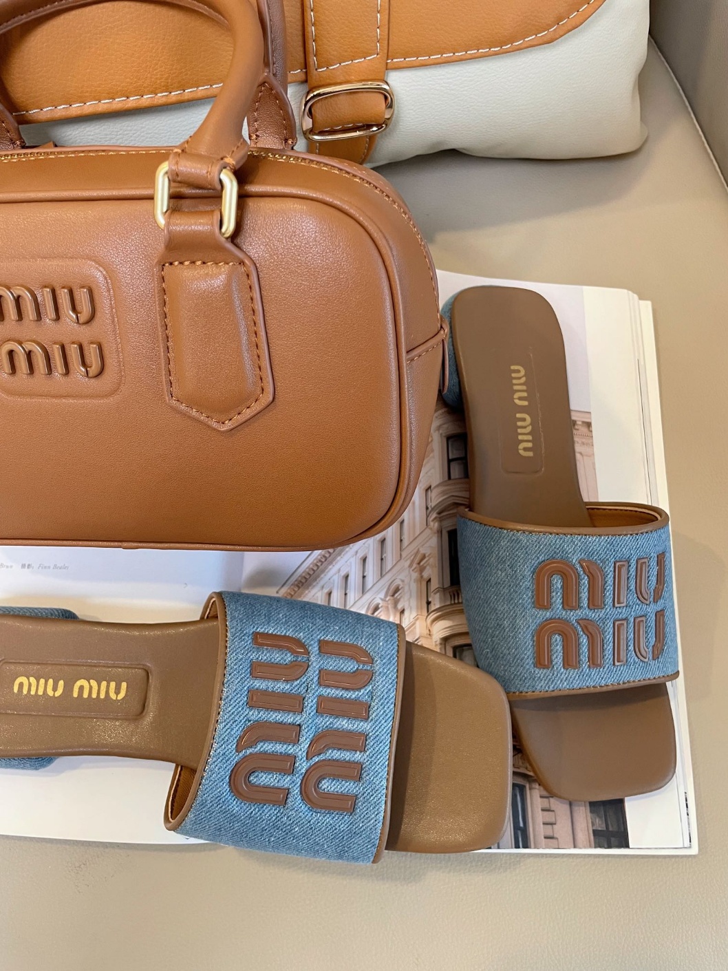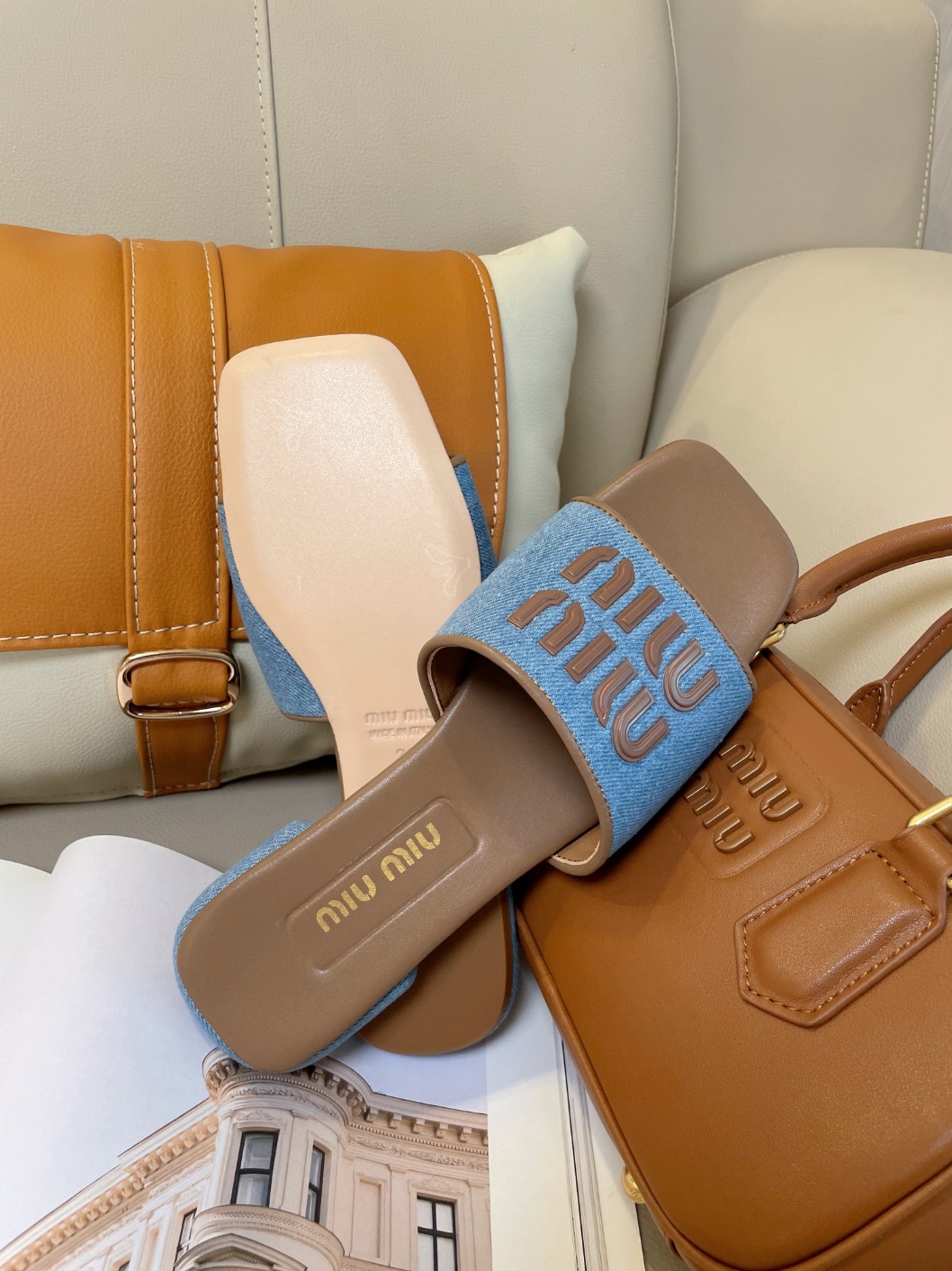 미우미우 캐주얼 슬리퍼 오리지널 라인의 엠보싱과 가죽 소재 매칭으로 제작 오리지널 패키지 액세서리