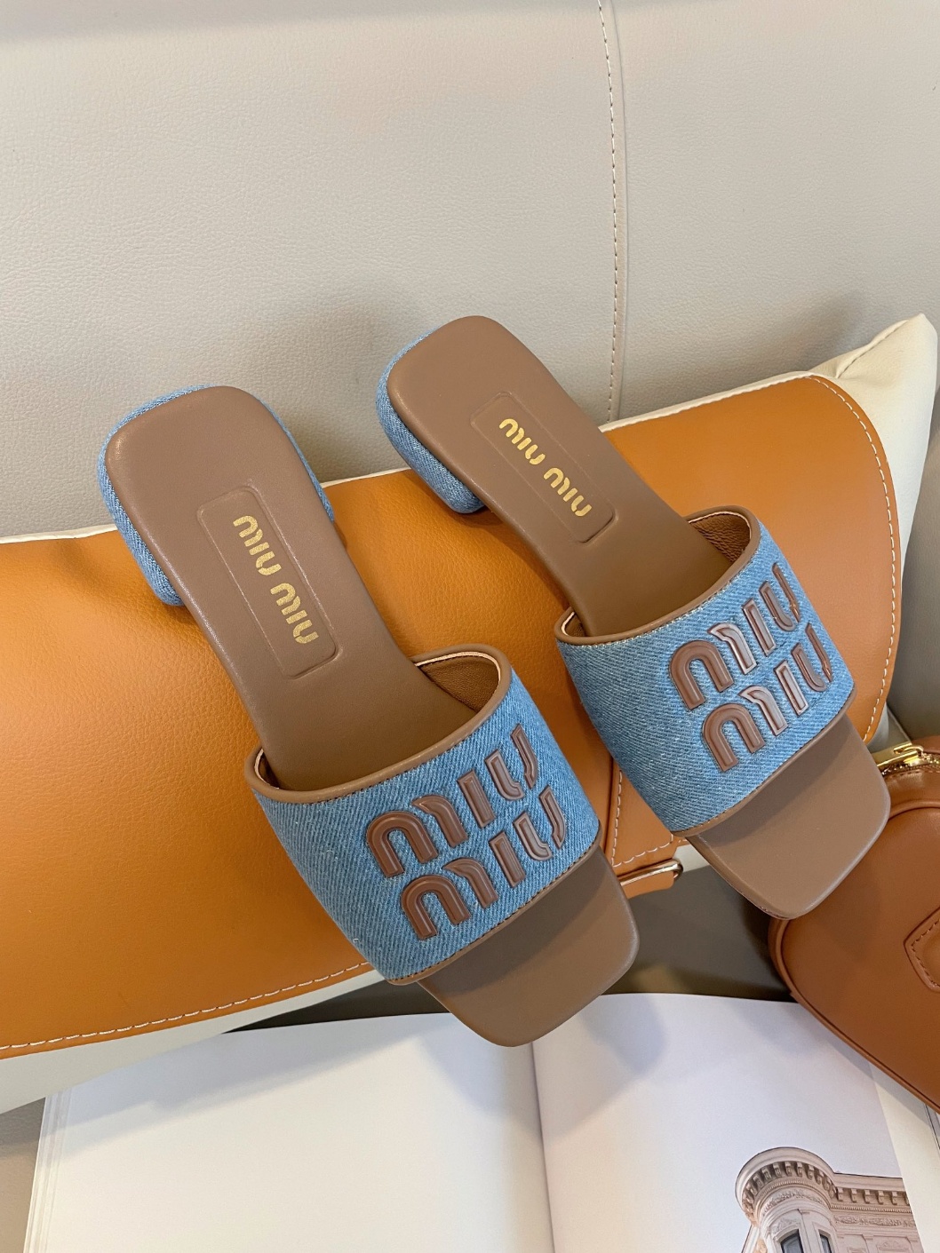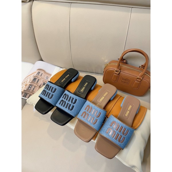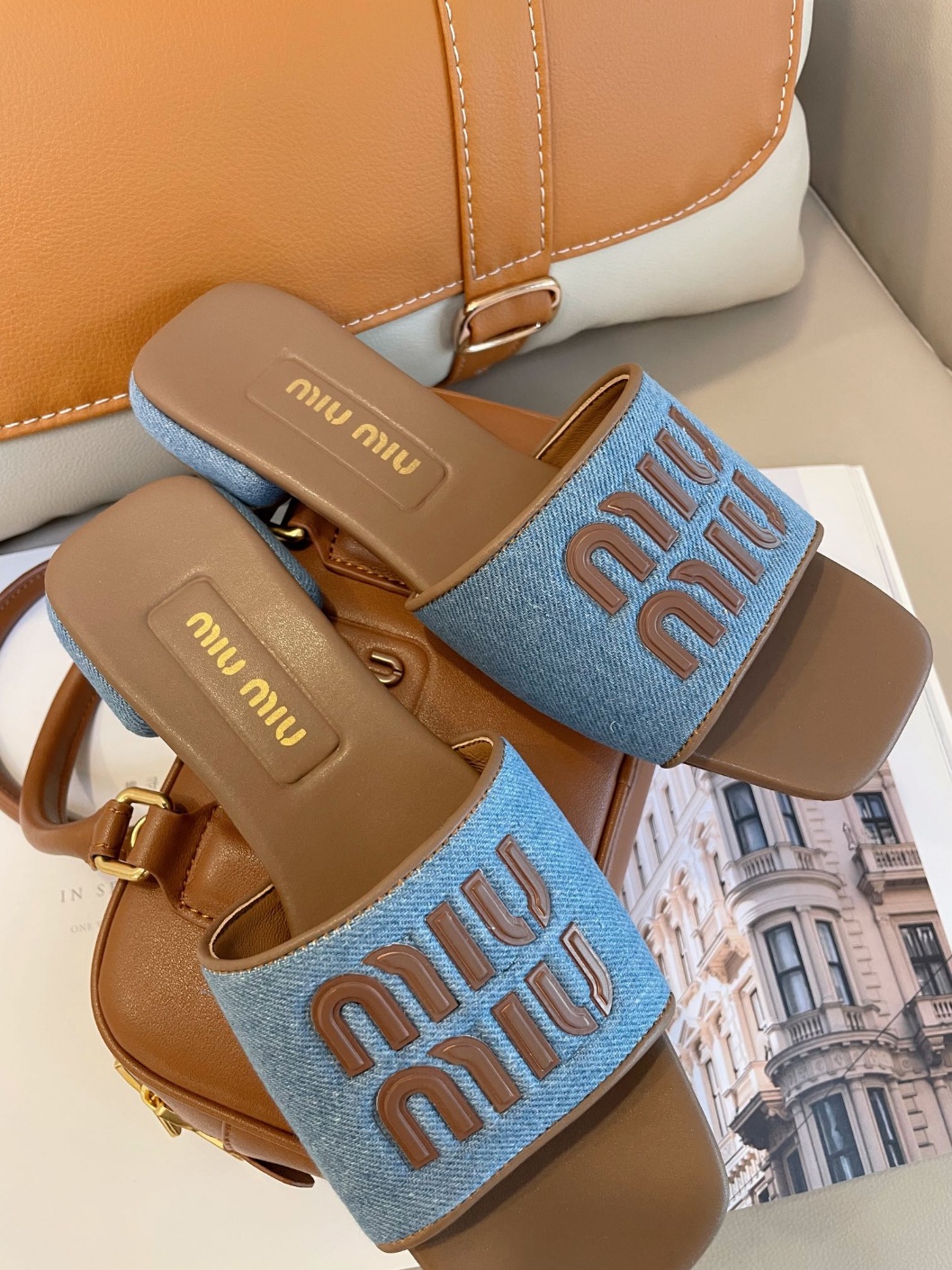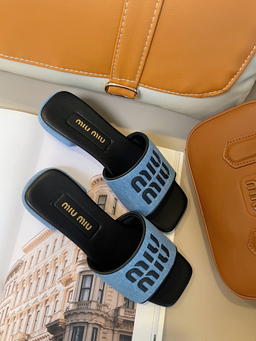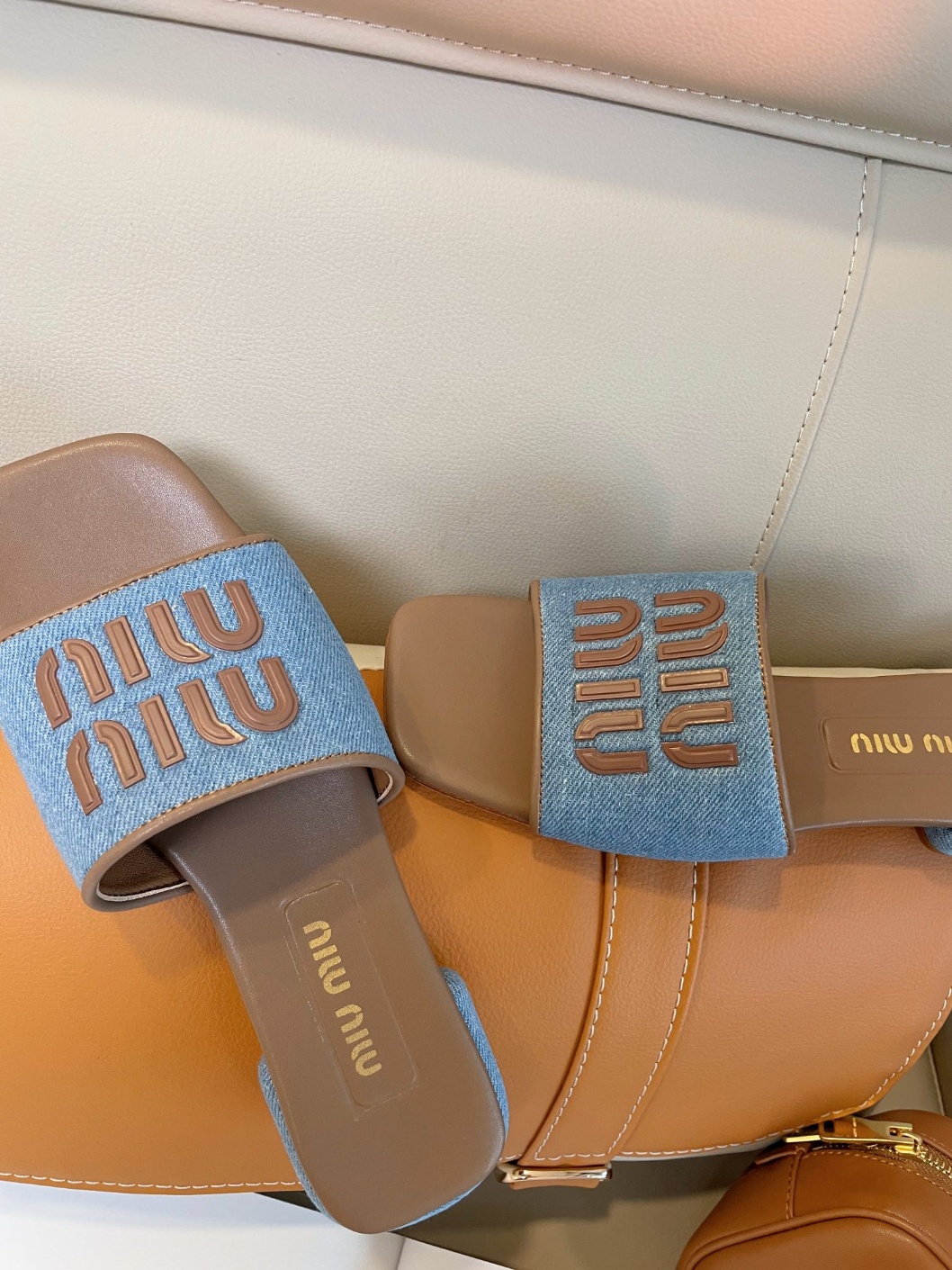 미우미우 캐주얼 슬리퍼 오리지널 라인의 엠보싱과 가죽 소재 매칭으로 제작 오리지널 패키지 액세서리