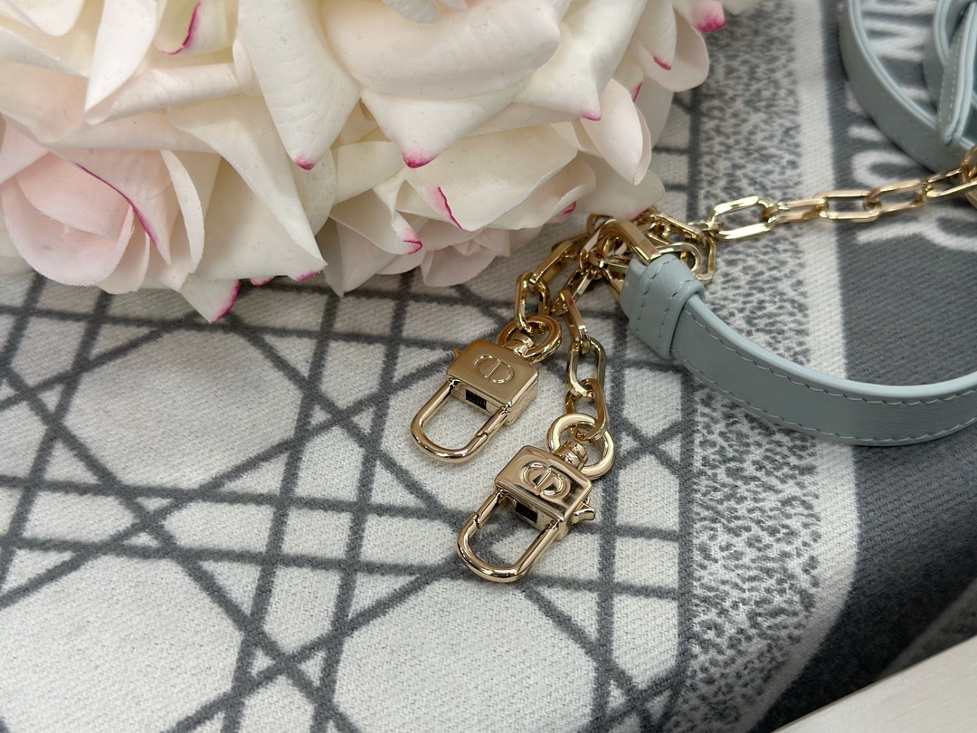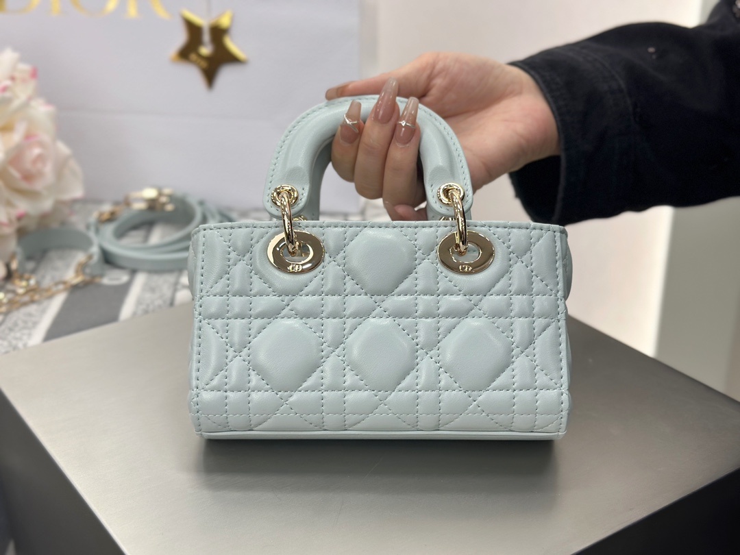 DIOR Lady D-Joy mini 호수 블루 토트/크로스 클래식하면서도 발랄함 수입 오리지널 양가죽에 연한 금색 철물 size: 16x9x5cm