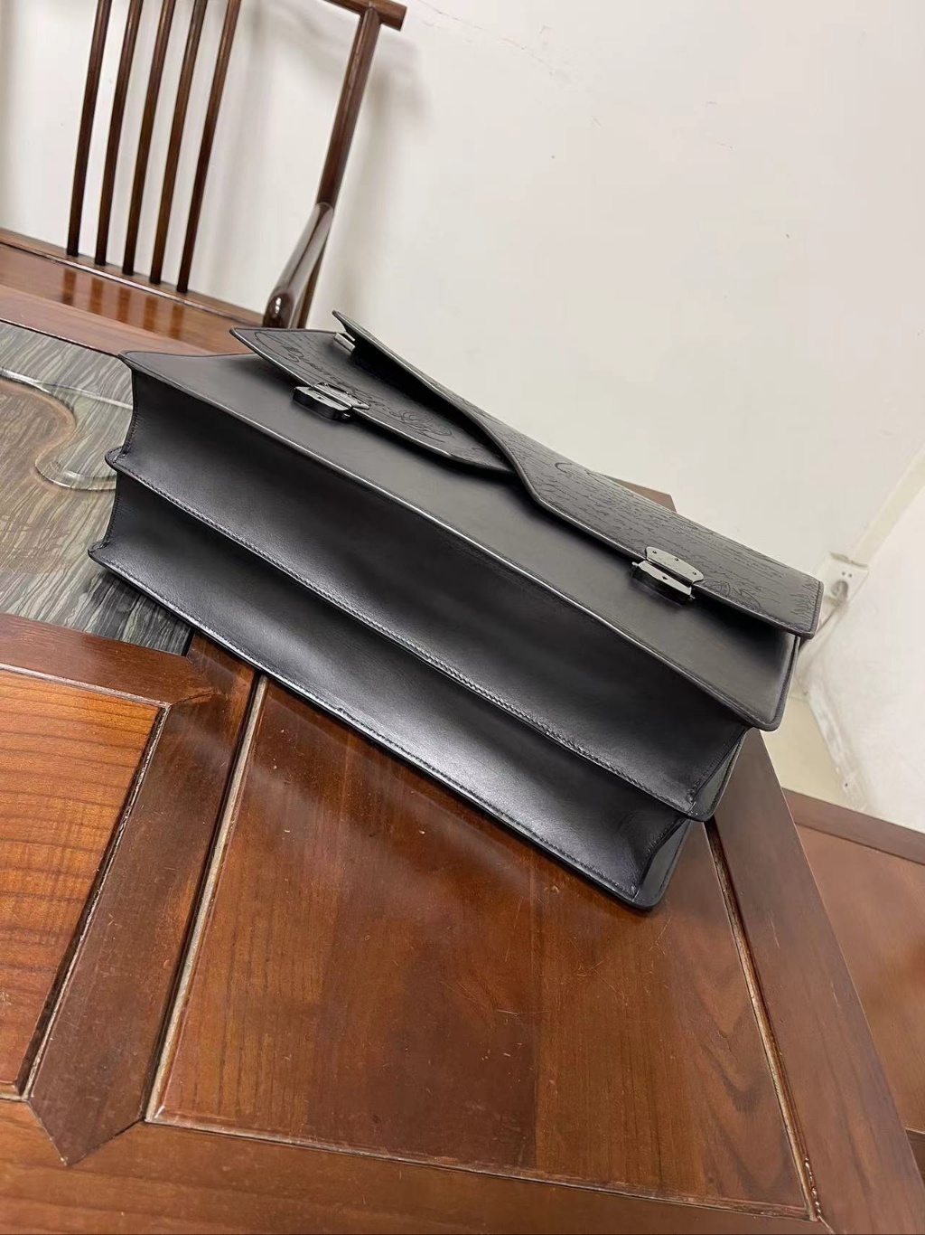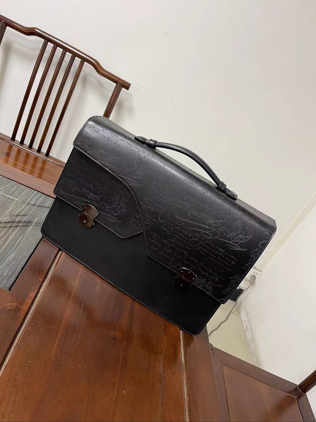 리미티드 Berluti 에미오 더블 버튼 서류가방 내부 특징: 별도의 4칸, 펜꽂이, 15인치 PC 수납 가능 외부 특징: 앞면 이중 잠금, 안전성, 윗면 핸드링 뒷면 포켓, 편리한 수납, 빈티지하고 럭셔리한 디자인 독보적인 스페셜 커스텀 사이즈 : 높이 30-폭 42-두께 16cm