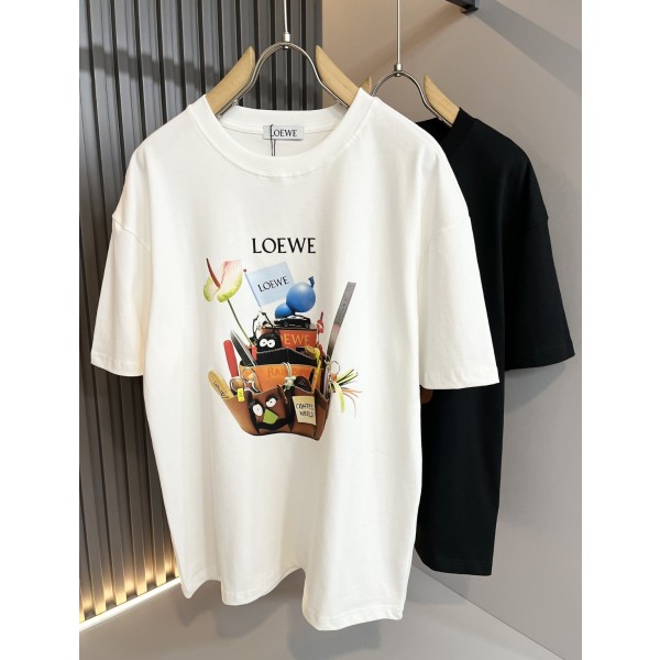 LOEWE 2024 봄여름 신상 반팔 티셔츠 이탈리아 오리지널 주문 채널, 특별 공급 주문 개성 있고 고급스러운 로고 패턴 프린팅 공정 디자인 홍콩, 마카오, 대만 바이어 매장에서 동시에 출시 최신 인기 제품이자 가장 고전적인 제품이며 사양과 등급은 의심의 여지가 없음