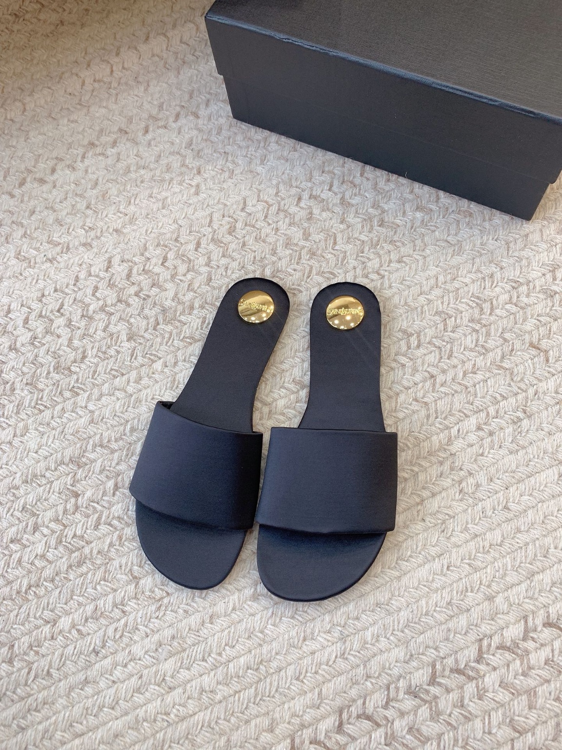 생로랑 갤러리아 플랫 슬리퍼 오리지널 패키지 최고 품질 겉면: 수입 테두리 비딩/수입 맞춤 실크 면 안감: 수입 양가죽 대저: 리얼 가죽 대저 철물: 원판 형개형 금속철물