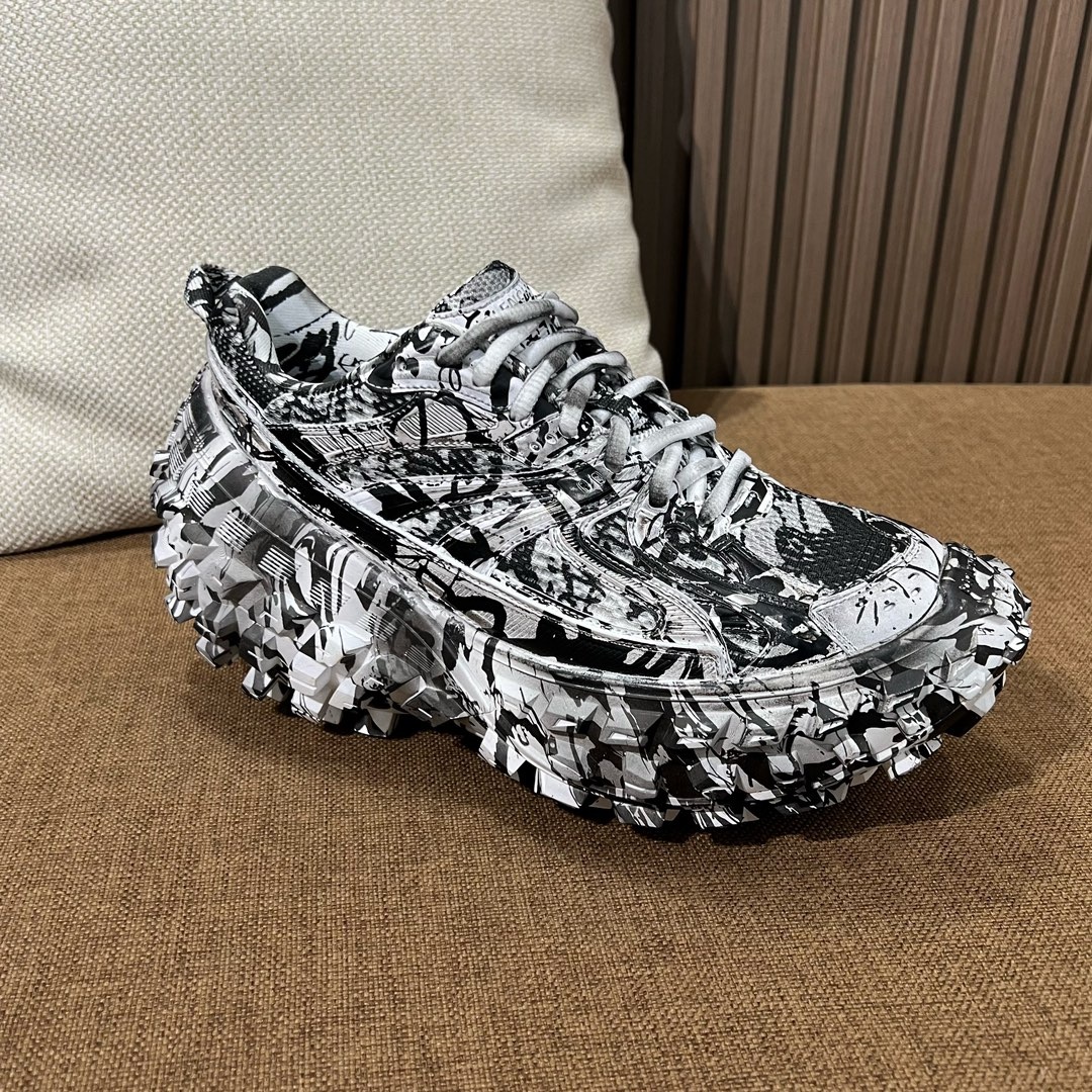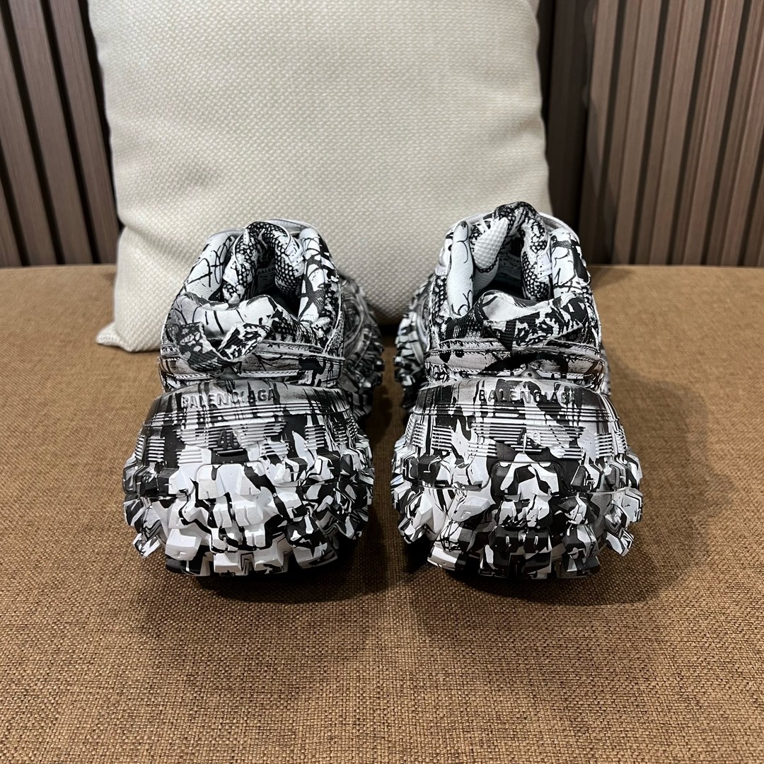 발렌시아가 새로운 운동화 디펜더 타이어 슈즈 키도 커지고 다리도 가늘어 보여 의심될 정도로 정말 예뻐요 바닥이 모두 고무 소재로 되어 있고 무늬가 타이어를 닮았음 작업이 매우 복잡함, 외관상으로는 기존 워싱 그대로 전체적으로 약 7센티 키높이