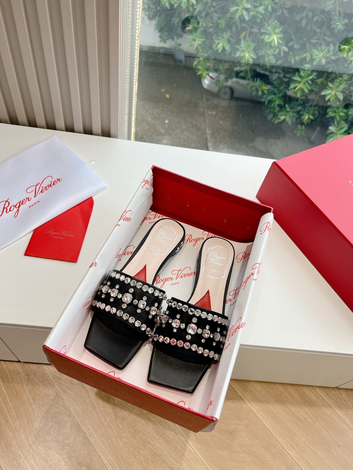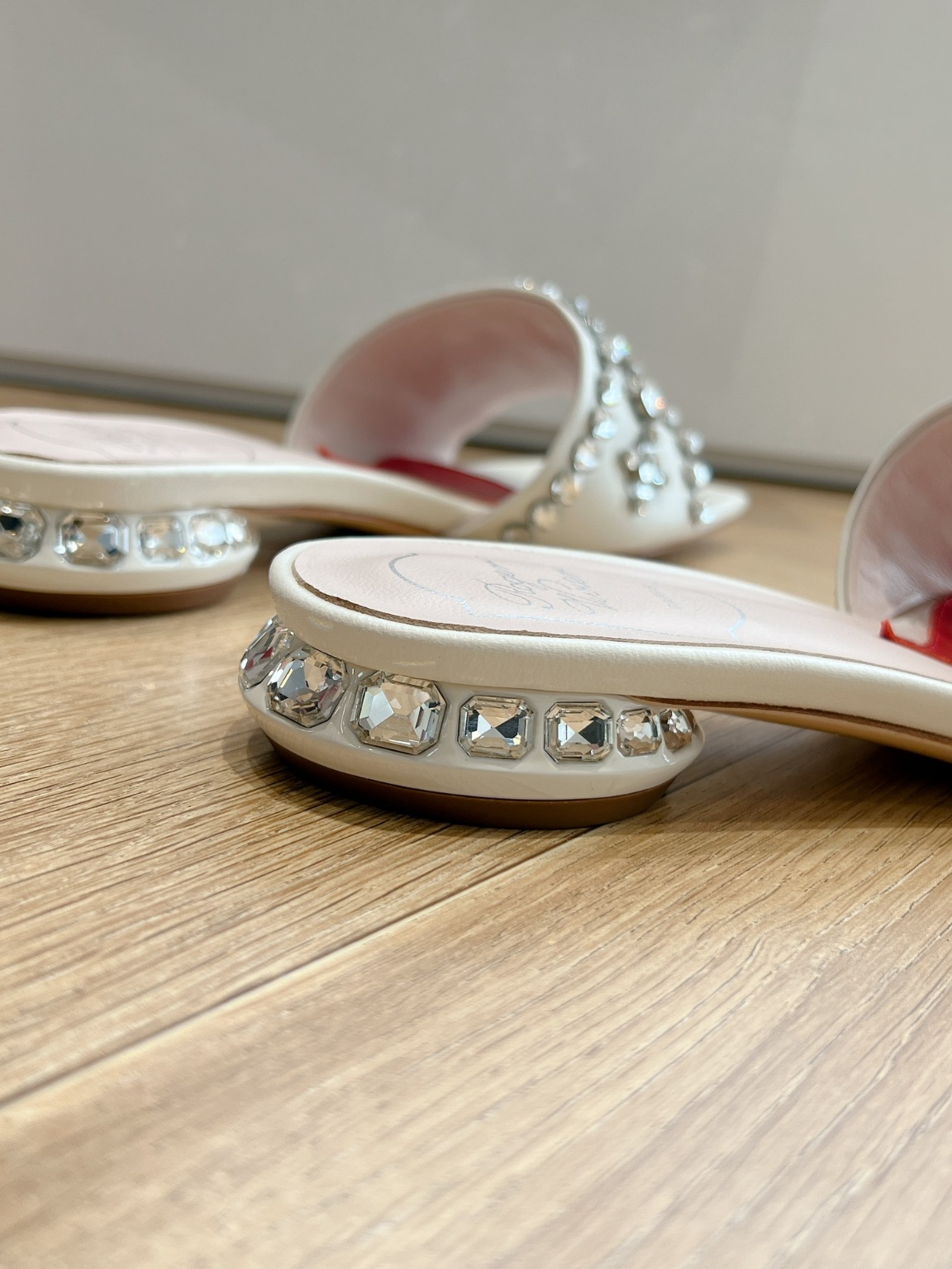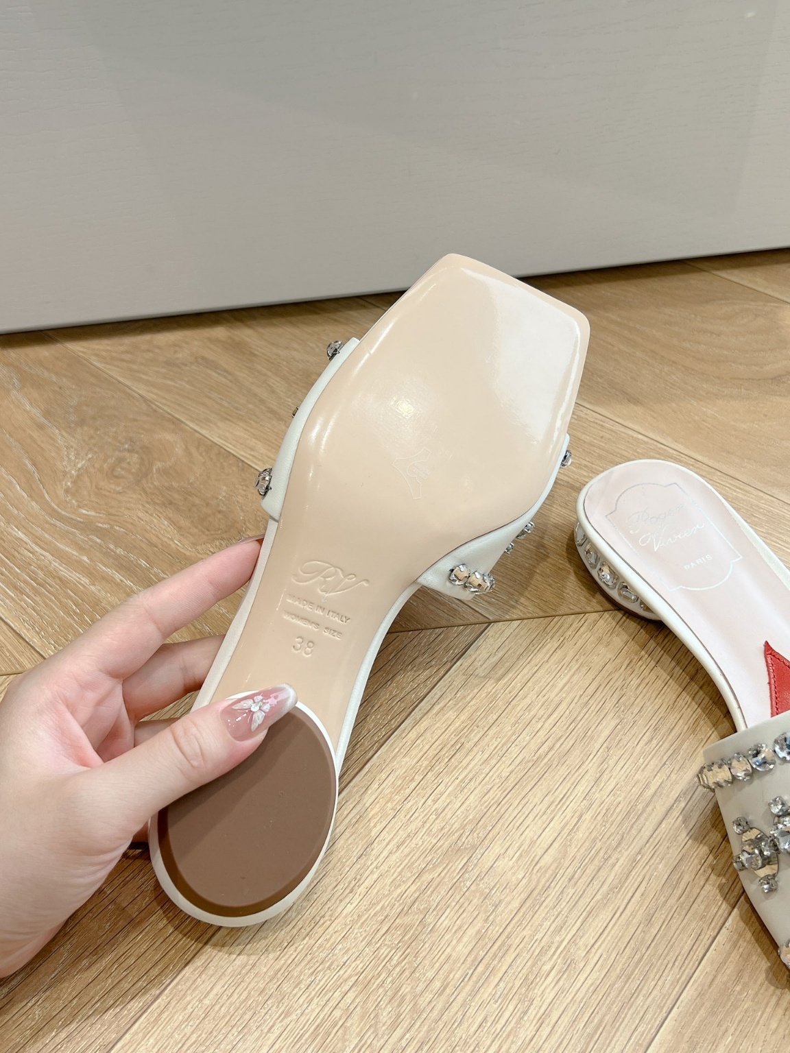 로저비비에 RV24 최신형 스퀘어 큐빅라인 슬리퍼 치마나 청바지에 매치해도 여성스러워요 소재: 오리지널 양가죽 안감: 수입 실크 메탈: 오리지널 스와로브스키 스톤 밑창: 오리지널 리얼 가죽