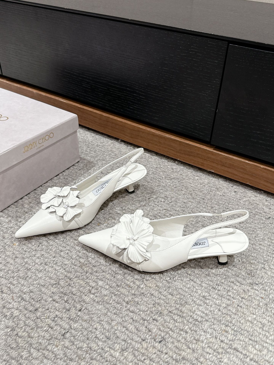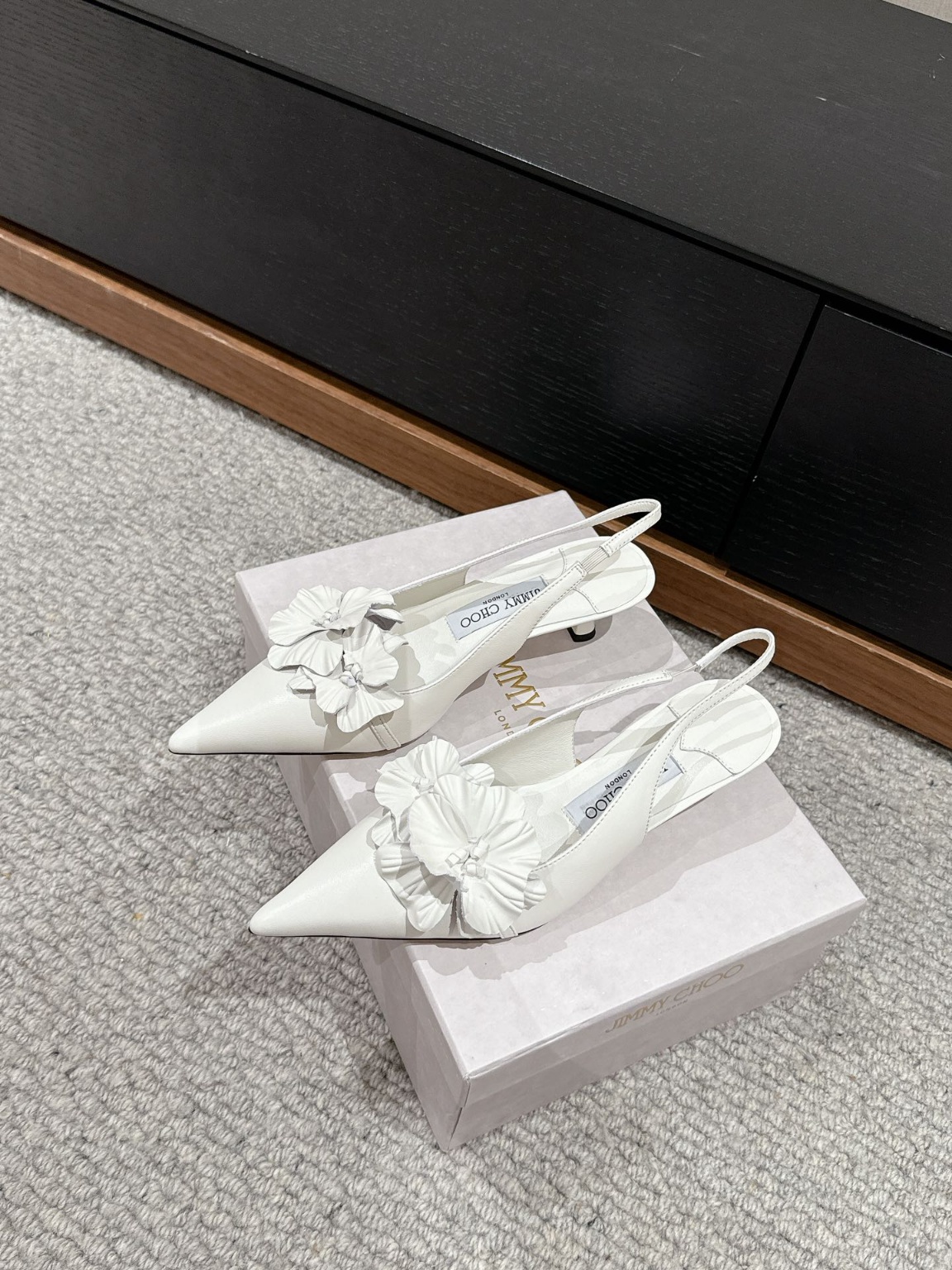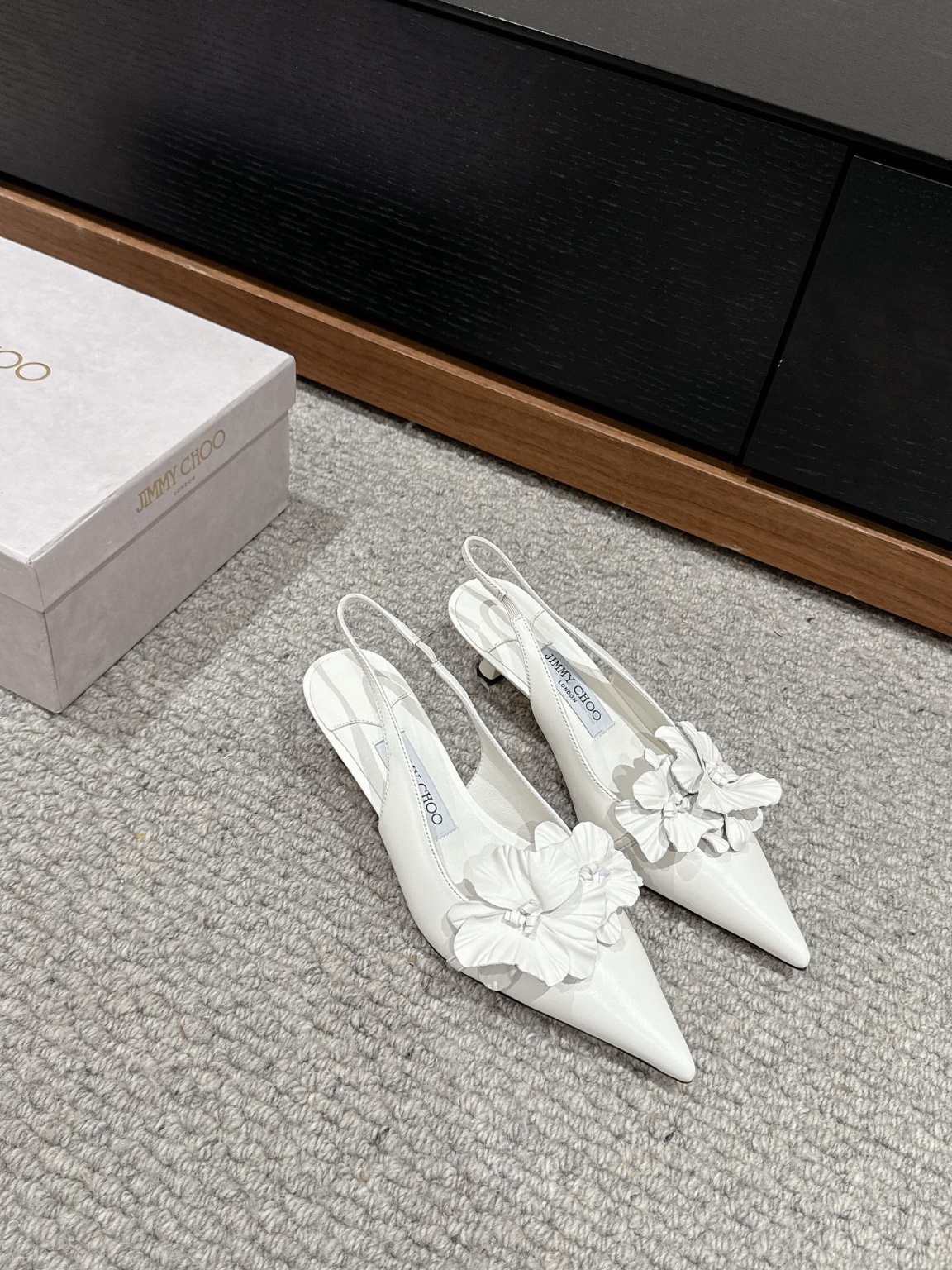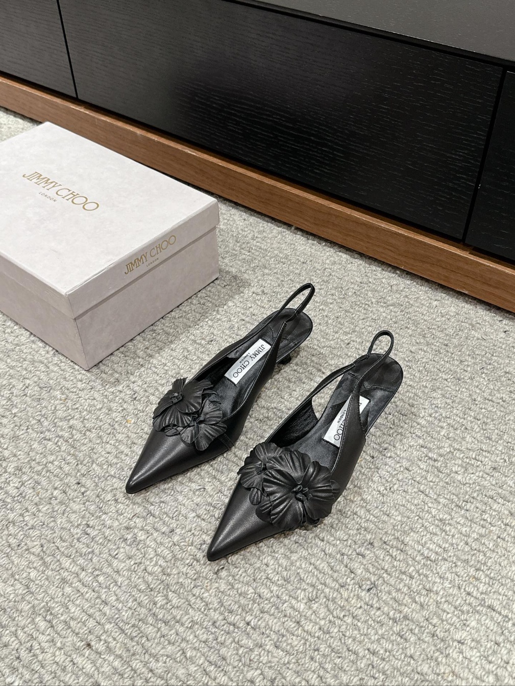 지미추 JC 24ss 봄여름 신상 스틸레토 플라워 샌들 최고급 버전 겉감: 수입 스웨이드 안감: 발바닥 혼용 무스탕 이태리 가죽 통굽 굽: 4.5cm