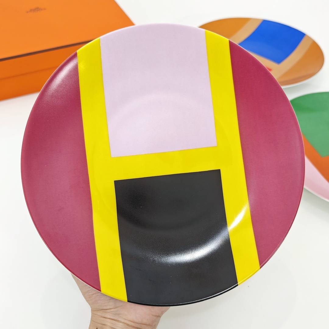 에르메스 접시세트(8인치-20.5cm 3개) 이란 고원의 고고학 유적지에서 이름을 따온 Sialk는 종이를 태운 후 투명도와 깊이, 화려한 색채 등 눈에 띄지 않는 풍부한 질감과 대비 효과를 보여주며 정교한 공예품, 작품이 모두 독특하고 색채의 융합과 질박한 원료의 미묘한 균형을 이룸 백태는 45% 고골자기, 1350도 고온 소성 1:1 맞춤 제작, 선물세트 포장
