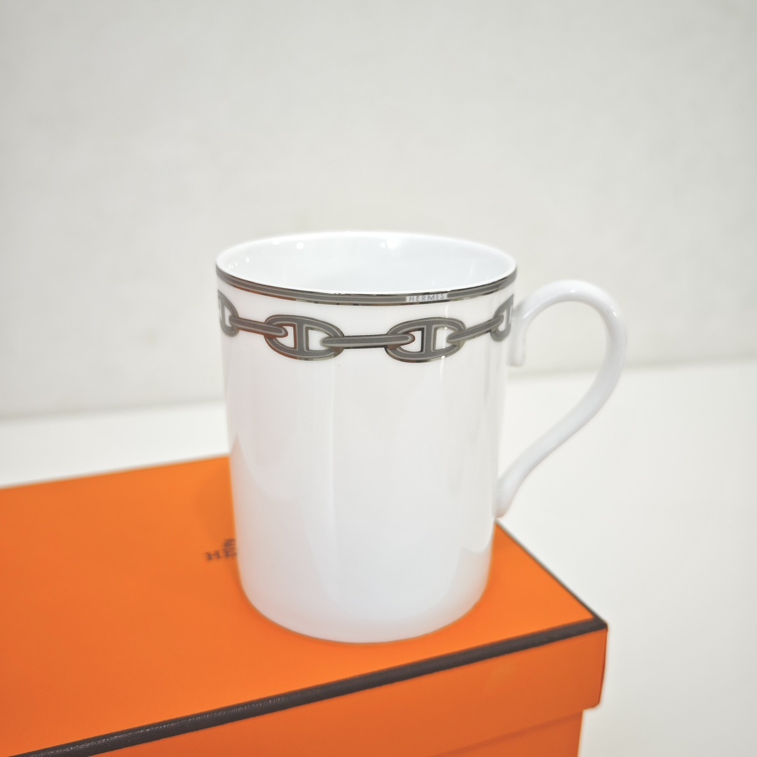 Hermes - Chaine dAncre Platinum/샹달 플래티넘 라인 머그컵 낱개 실크스크린 프린팅과 핸드페인팅으로 장식 플래티넘 소재 장식 Chaine dAncre 세트 디자인은 아이코닉한 에르메스 체인링에서 영감을 받아 클래식하고 심플함 식기세척기 X, 전자레인지 X