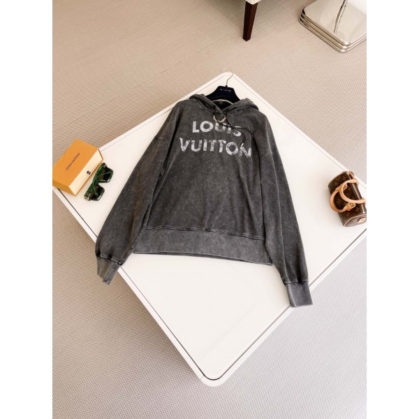 LOUIS VUITTON 24 워싱 그레이 면 후드 힙스터 후드 워싱 나염 면 니트 빈티지 원단으로 가슴 루이비통 프린팅이 퇴색 효과를 주며 루즈한 컷팅 스트링 후드와 골지 밑단이 편안한 경험을 선사 스커트 한 벌과 매치가능 최고의 퀄리티로 발매