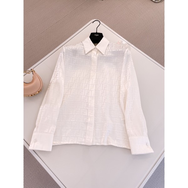 FENDI 24 FF 새틴 칼라 진주 화이트 실크 셔츠 수입 헤비 크레이프 자카드 원단, YB 진주 컬러 터틀넥 셔츠 절묘한 H라인 F 자카드 패턴으로 브랜드 이미지 표현 절미하고 세련된 상체, 첫 최고판 발매