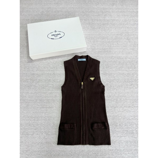 PRADA 니트 베스트 나사산에 지퍼 여밈과 함께 컨셉트 디자인으로 재해석한 톤온톤의 니트, 삼각로고가 포인트 슬림한 핏으로 착용감이 편하며 여름에 스타일링하시기 좋음