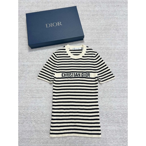 DIOR 간색 스트라이프 니트 반팔, ZP11500 디올 리비에라 한정 라인으로 클래식하고 모던한 느낌의 니트 화이트와 블랙 코튼 골지 니트 소재로 정교하게 제작 D 레터링으로 반바지, 스커트 등의 아이템과 매치하여 연출가능 면 100%