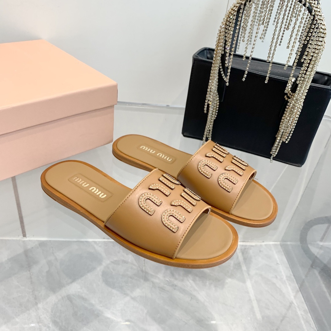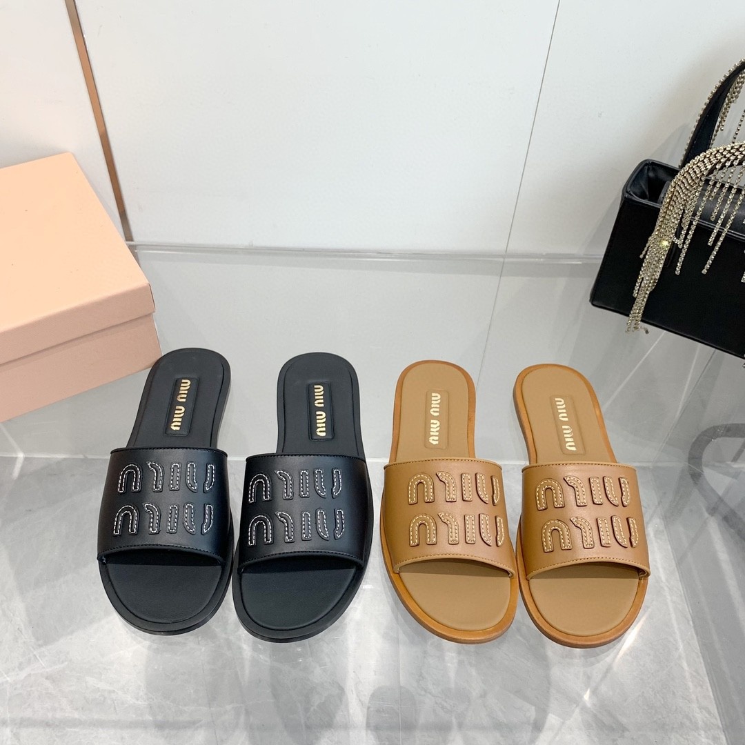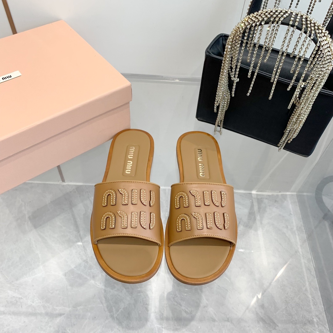 미우미우 24ss 봄여름 신상 가죽 로고 하프 슬리퍼 오리지널 버전 개발 오리지널 소가죽+안감 소가죽 오리지널 고밀도 리얼 가죽 대창+리얼 가죽 스트랩