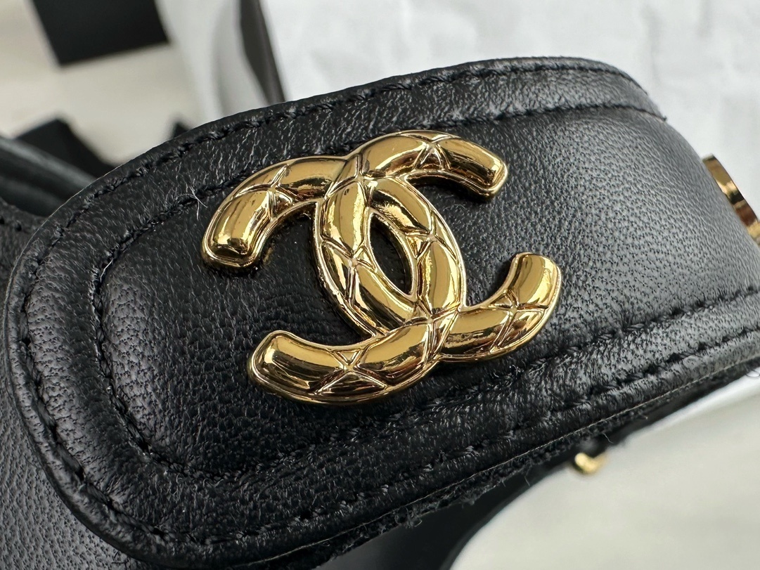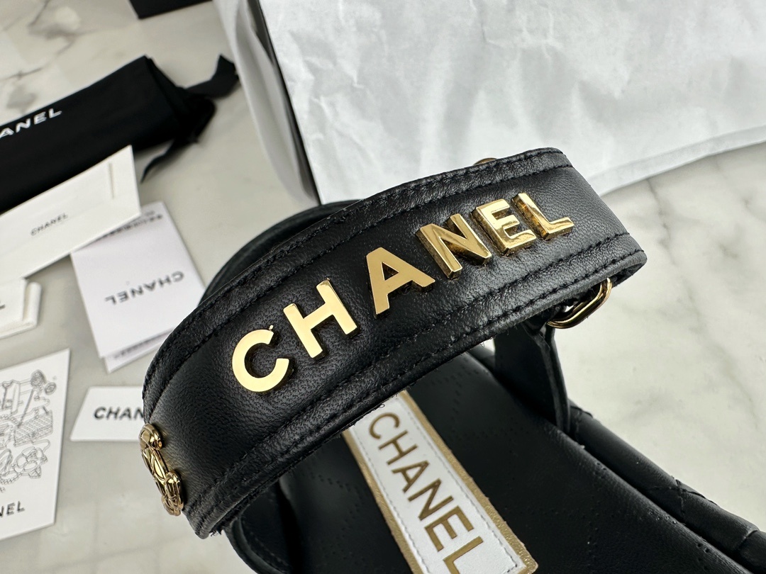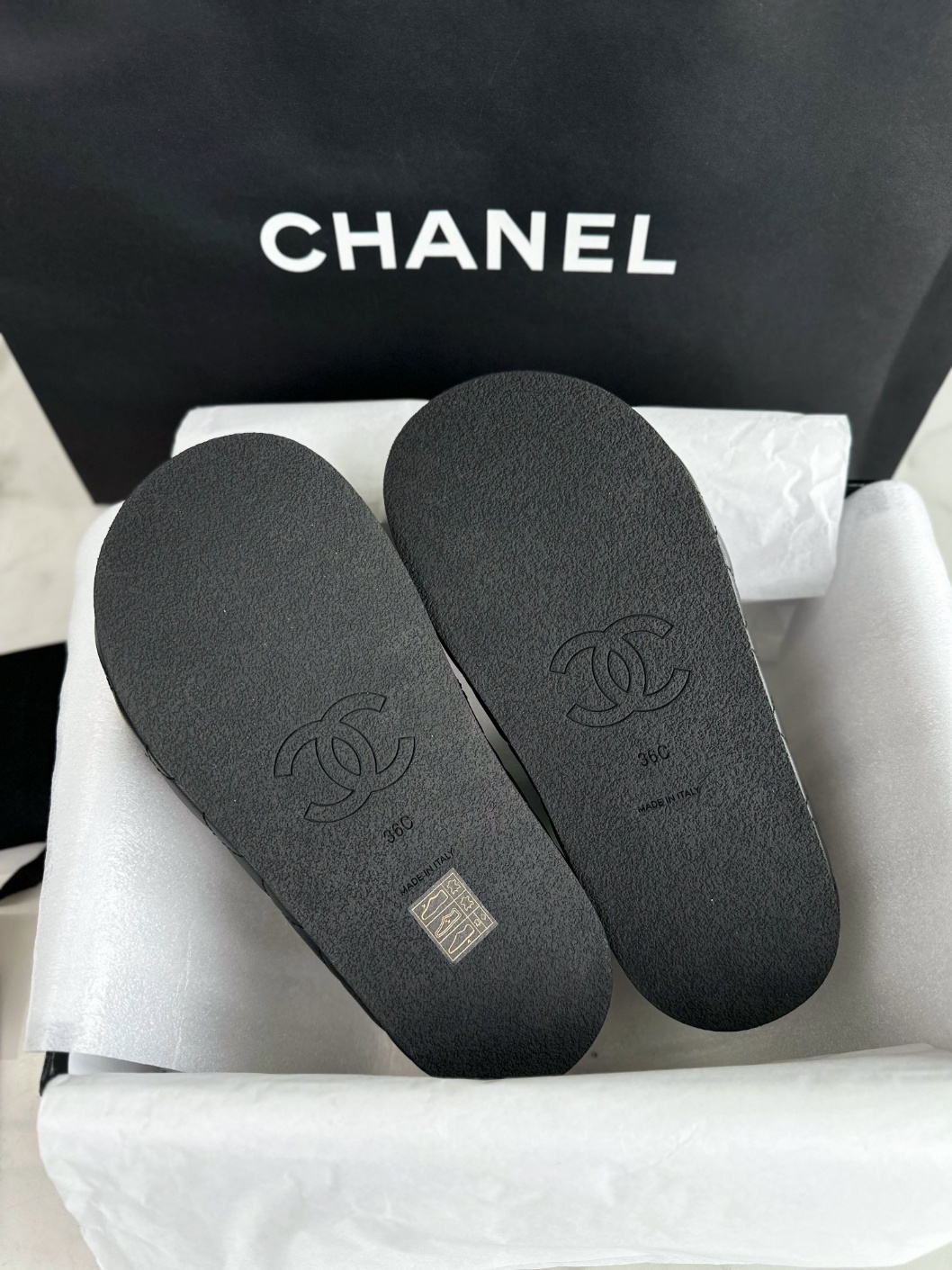 샤넬 24C 퀼팅 벨크로 샌들 심플한 블랙 컬러의 양가죽으로 제작 오리지널 스펀지+최고급 스티치 아이코닉하며 클래식한 퀼팅 요소와 레터링 로고 버클 4cm 두께의 통 양가죽 포수대는 사치스러운 키높이 효과