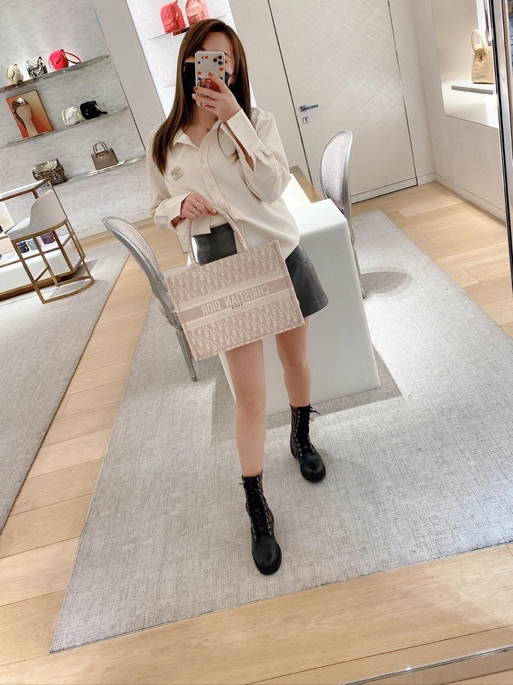 디올 북토트 미디엄 로즈 핑크 오블리크 고급스러움 가득한 시그니처 클래식 오블리크 브랜드 아이덴티티의 인지도가 매우 높으며 매우 가볍고 부담없이 들고 다니기 미디엄 사이즈의 바디는 변형 걱정 없이 단단하며 일상에 필요한 건 모두 수납가능한 용량 비주얼도 좋고 실용적이어서 적극 추천 size: 36x28x16cm