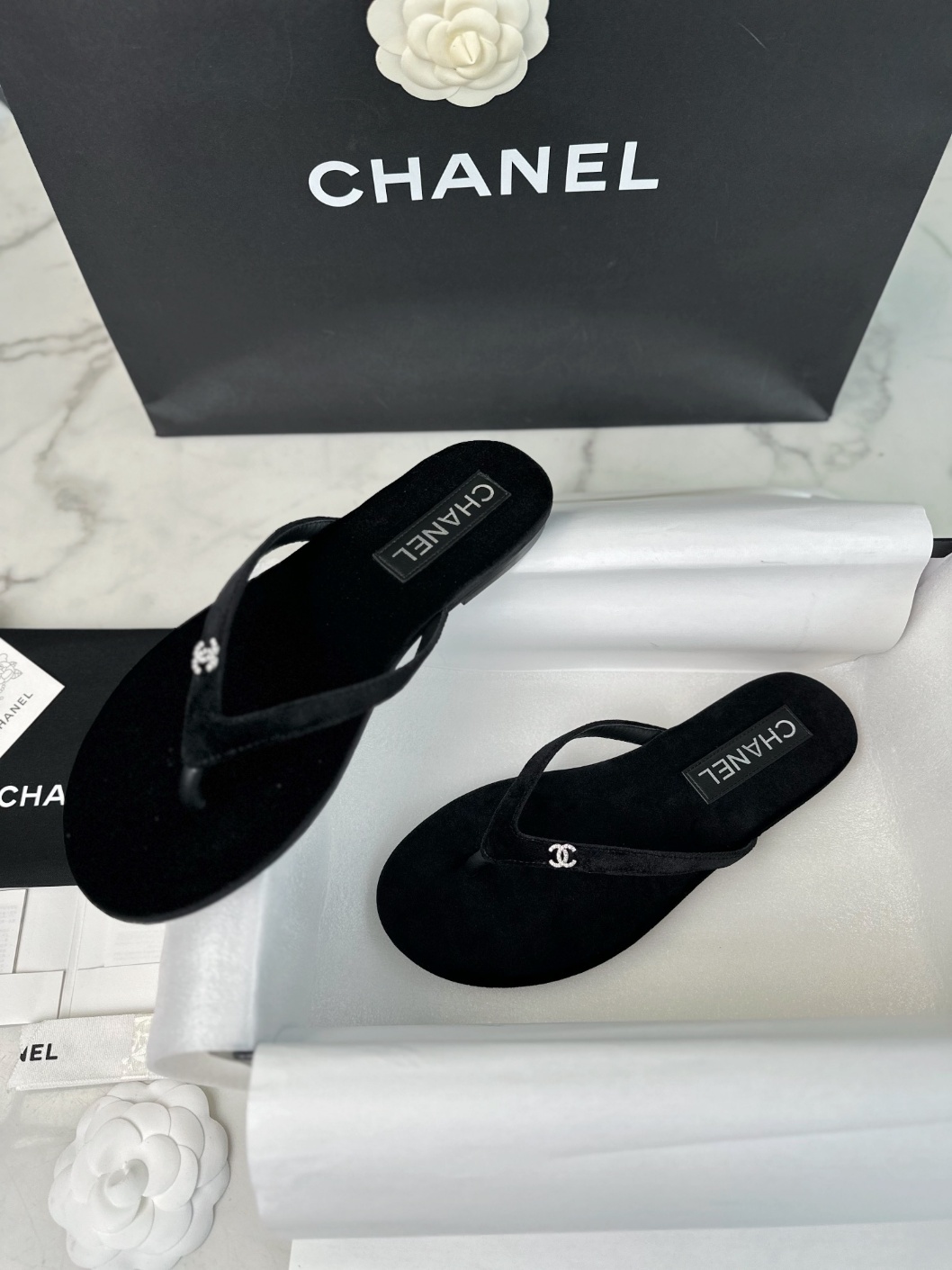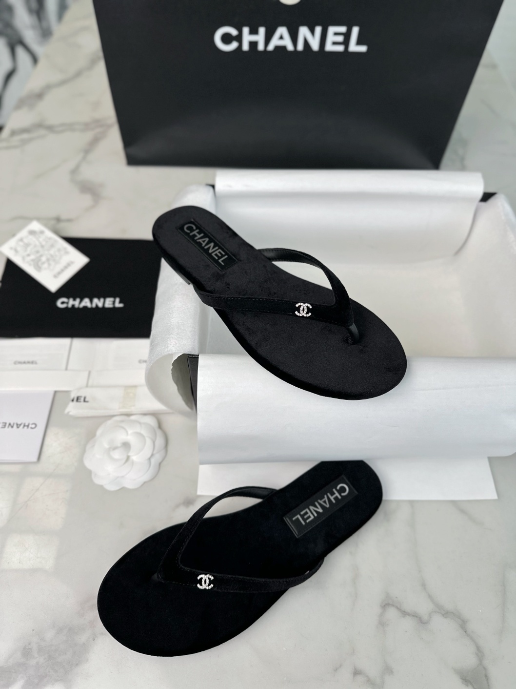 샤넬 24S 벨벳 조리 슬리퍼 수입 벨벳 패치워크 + 오리지널 양가죽 안감 블랙 벨벳에 반짝이는 로고 액세서리 기본 심플한 더블 씨 로고로 포인트 리얼 가죽 바닥의 럭셔리 사양으로 고급스러움 여름에 필수 기본 아이템