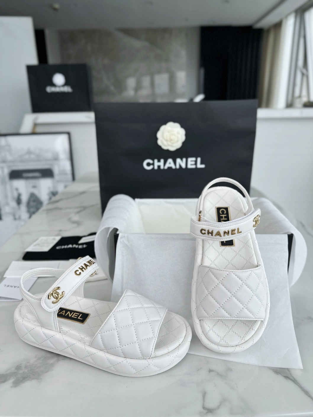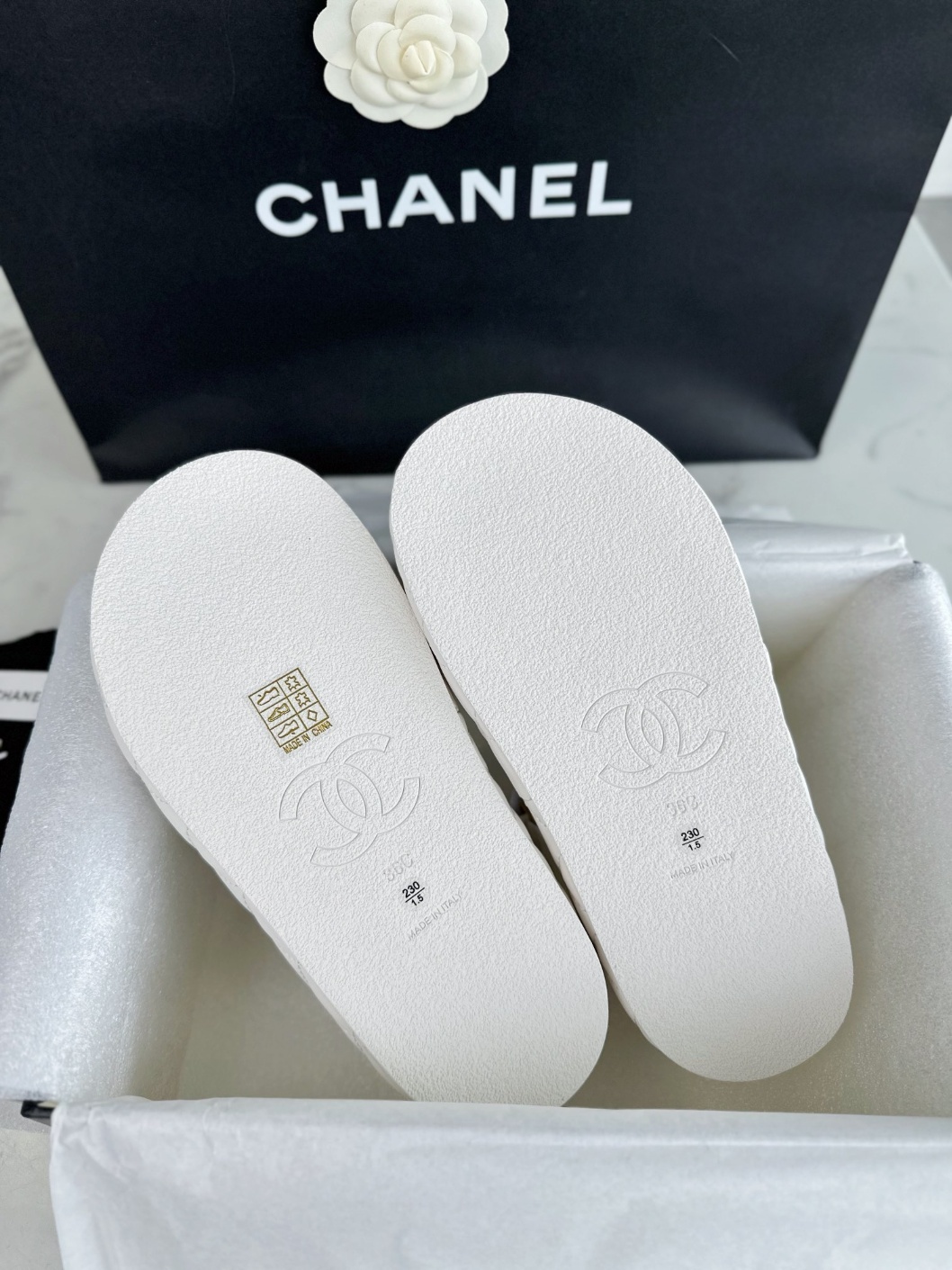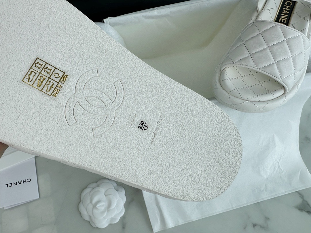 샤넬 24C 화이트 퀼팅 벨크로 샌들 화이트는 블랙에 비해 만들기 어렵고 로스가 큼 지적이고 우아한 맛으로 빈티지하고 부드러운 느낌을 연출 밀크후크 컬러에 미니멀한 퀼팅 디자인으로 세련되면서도 한 눈에 무한한 상상력을 선사하는 포인트