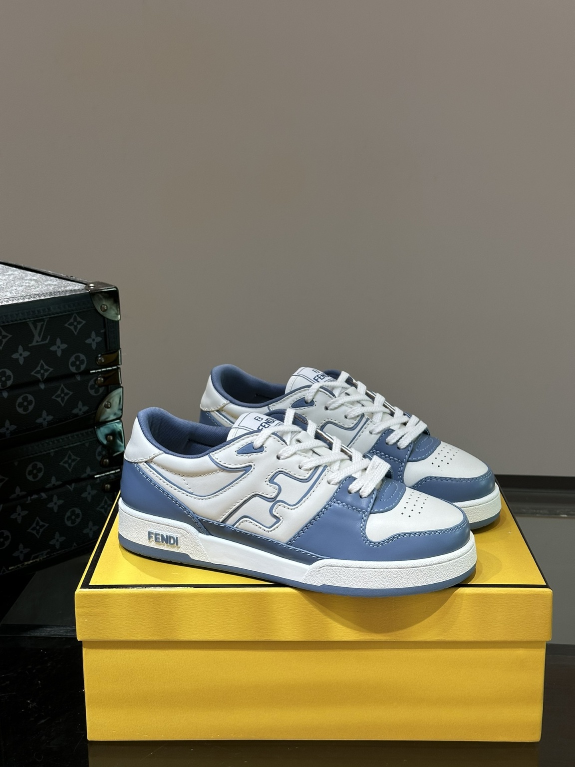 펜디 여름 한정 남성 매치 캐주얼 스니커즈 최신 배색, 빈티지 라벨 아웃솔 옆면에는 FF 패턴 스티치가 장식, 밑창은 Fendi로 엠보싱 송아지 가죽, 스웨이드 소재에 화이트 가죽 디테일 충격 흡수성 소재의 고무 코팅 창