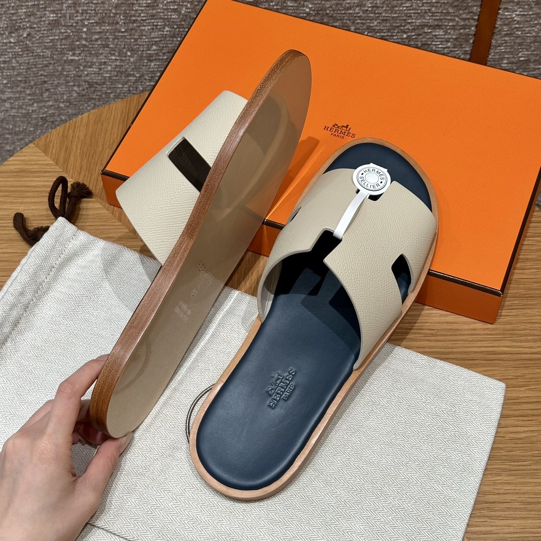 스타일: 남성 슬리퍼 Men slippers 이즈미르 색상: 셰이크화이트/ck10/Craie 신발 겉감: 장문송아지가죽/Epsom/Calfskin 바닥재: 진피대창/Dermal outsole 저희 제품은 모두 핸드메이드
