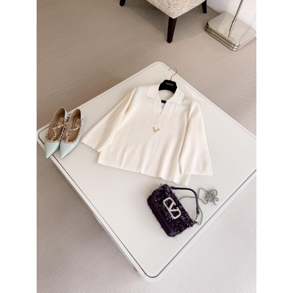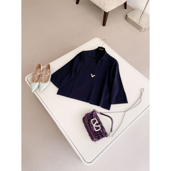 VALENTINO 24 투톤 딥 브이 니트 칠부 봄여름 신상 브이넥 상의는 퓨어한 펄 화이트 계열과 클래식한 네이비 계열로 원단의 통기성이 뛰어나고 부드럽고 섬세하며 편안하며 깊은 터틀넥 V메탈 로고 포인트 최초의 프리미엄 퀄리티