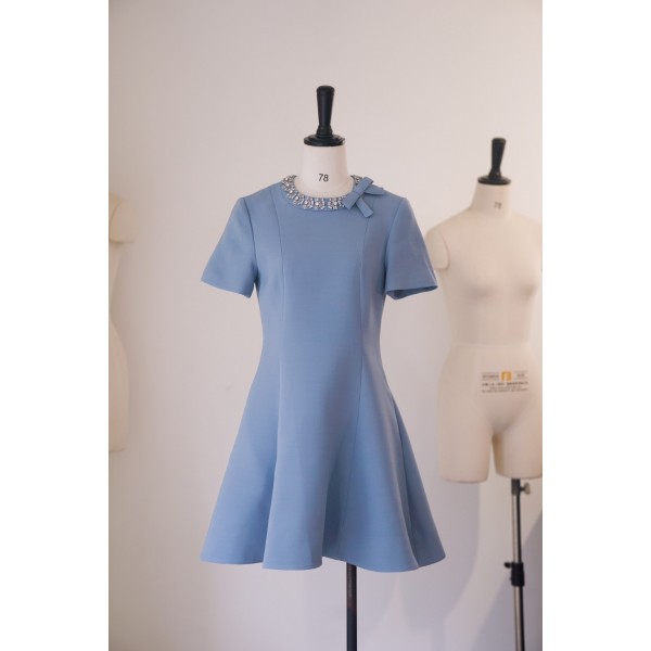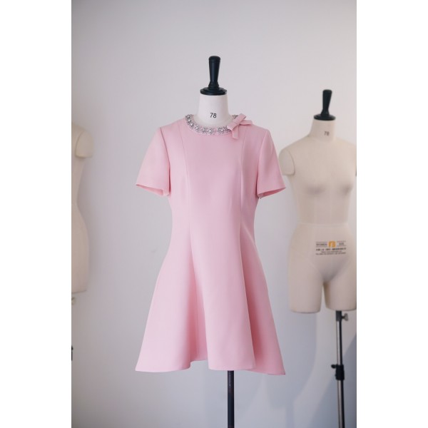 VALENTINO 24 큐빅 리본 스모그 실크 원피스 YB정염 투톤 실크 원단 입체 컷팅과 네크라인 큐빅 장식 핸드메이드로 장식한 입체 리본이 메리제인을 사랑스럽게 표현 라인으로 스타일리쉬한 룩을 완성시켜주는 실크 최고의 퀄리티를 선보임