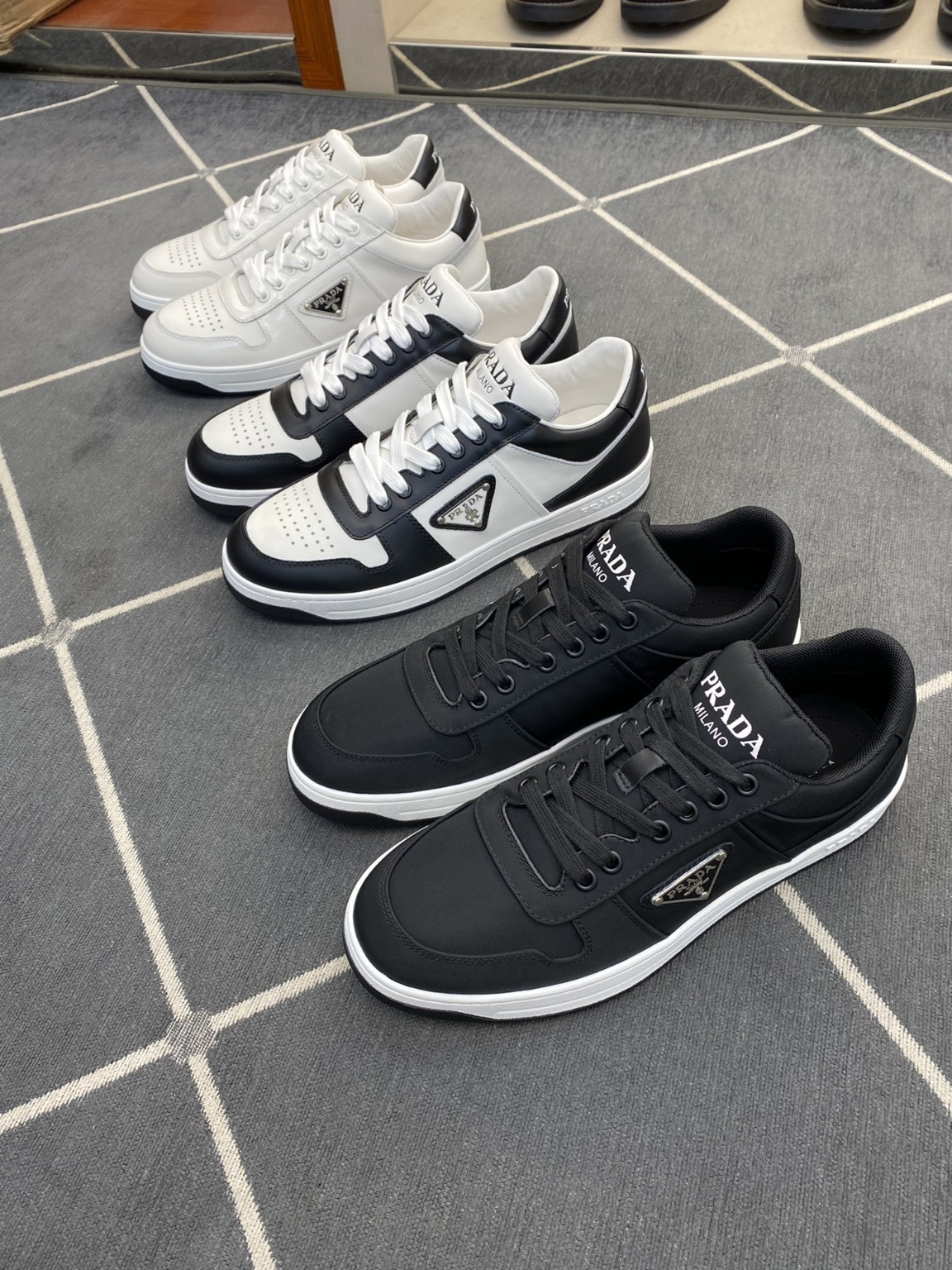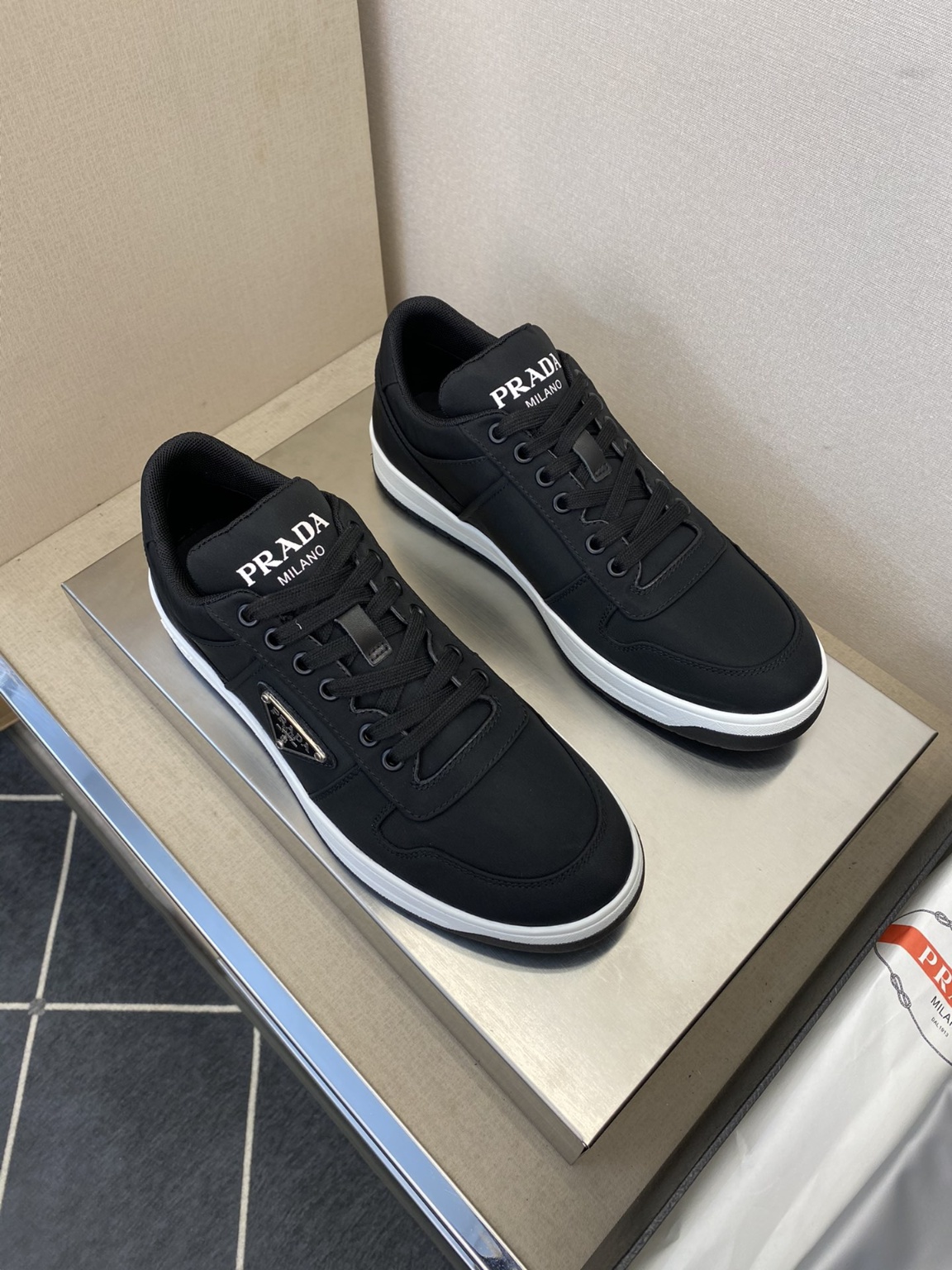 프라다 최고의 공예품 남성 캐주얼 스니커즈 유광펄 원단 송아지 가죽 안감 송아지 가죽 라텍스 리버스 펀칭 발판 오리지널 TPU 베이스 퀄리티 디테일 컷으로 질감 짱