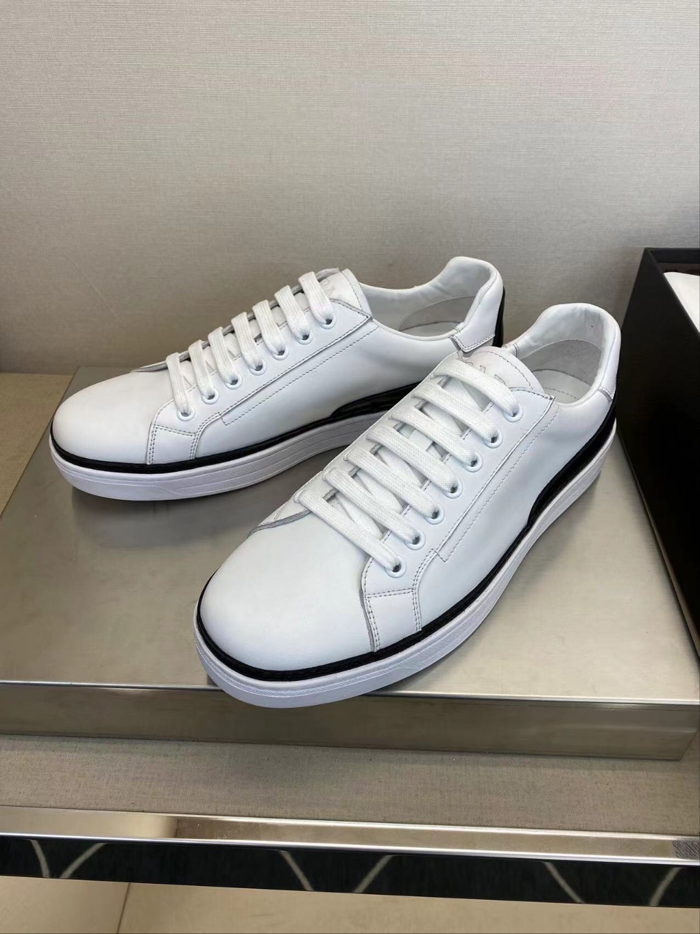 프라다 최고의 공예품 남성 캐주얼 스니커즈 독점 주문 제작 수입 밀랍 송아지 가죽 안감 통송아지 가죽 라텍스 탄력깔개 경량화 고무창, 퀄리티 디테일 컷으로 질감 짱